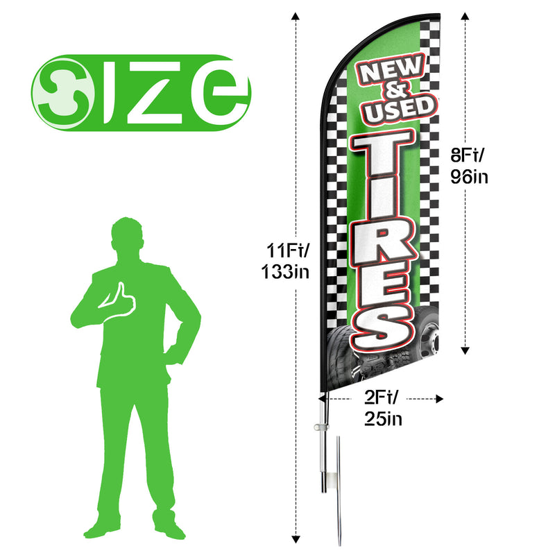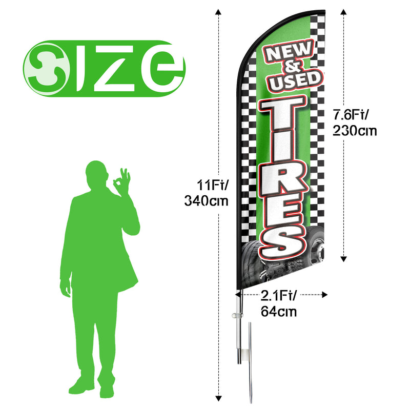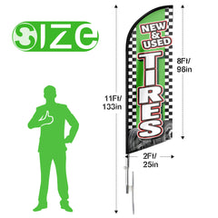 - 🏠【Excellent Advertisement Tool】The Wheels Tires feather banner size is very large (11ft/ 340cm) tall and (2.1 ft/ 64cm) wide, visible enough from far away, you may put the feather banner up in front of your business, at the entry or on the sidewalk, really a must-have and cost-effective way to increase traffic to business.