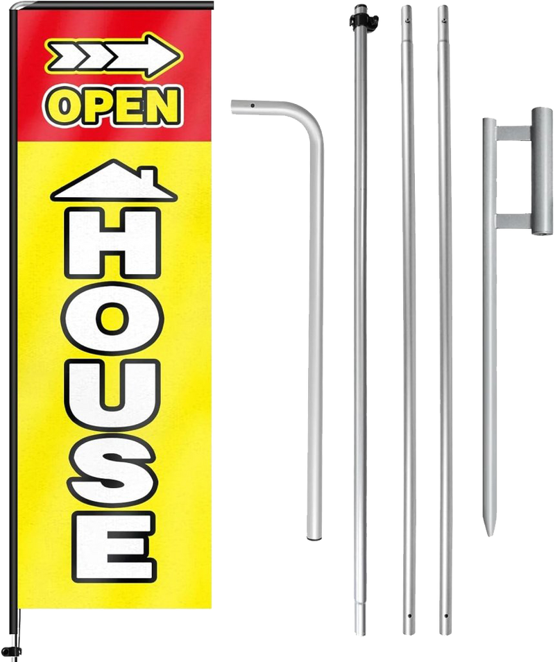 - 【Attention-Grabbing】Open house flags for real estate agents stand tall and sway with the wind, making them highly visible and attention-grabbing. The Open house flags’ unique shape and vibrant colors make them stand out in crowded environments, attracting many potential customers from a distance.