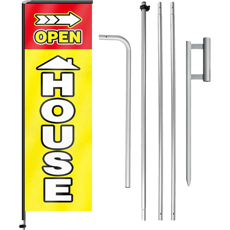- 【Cost-Effective Advertising】The open house banner offer a cost-effective advertising solution compared to other traditional forms of outdoor advertising. This open house flag size is (11ft/132in) tall and (2.3ft/27.5in) wide, visible enough from far away, ensures your business stands out from the crowd, grabbing attention and increasing foot traffic.