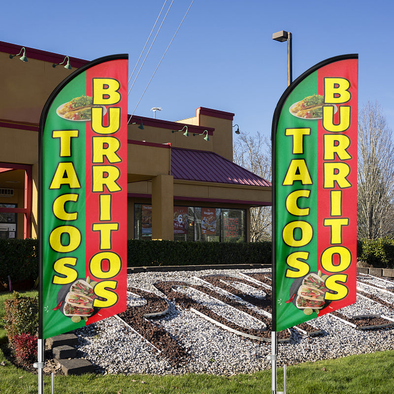 11ft Tacos Burritos Feather Flag with Flag Pole and Ground Stake