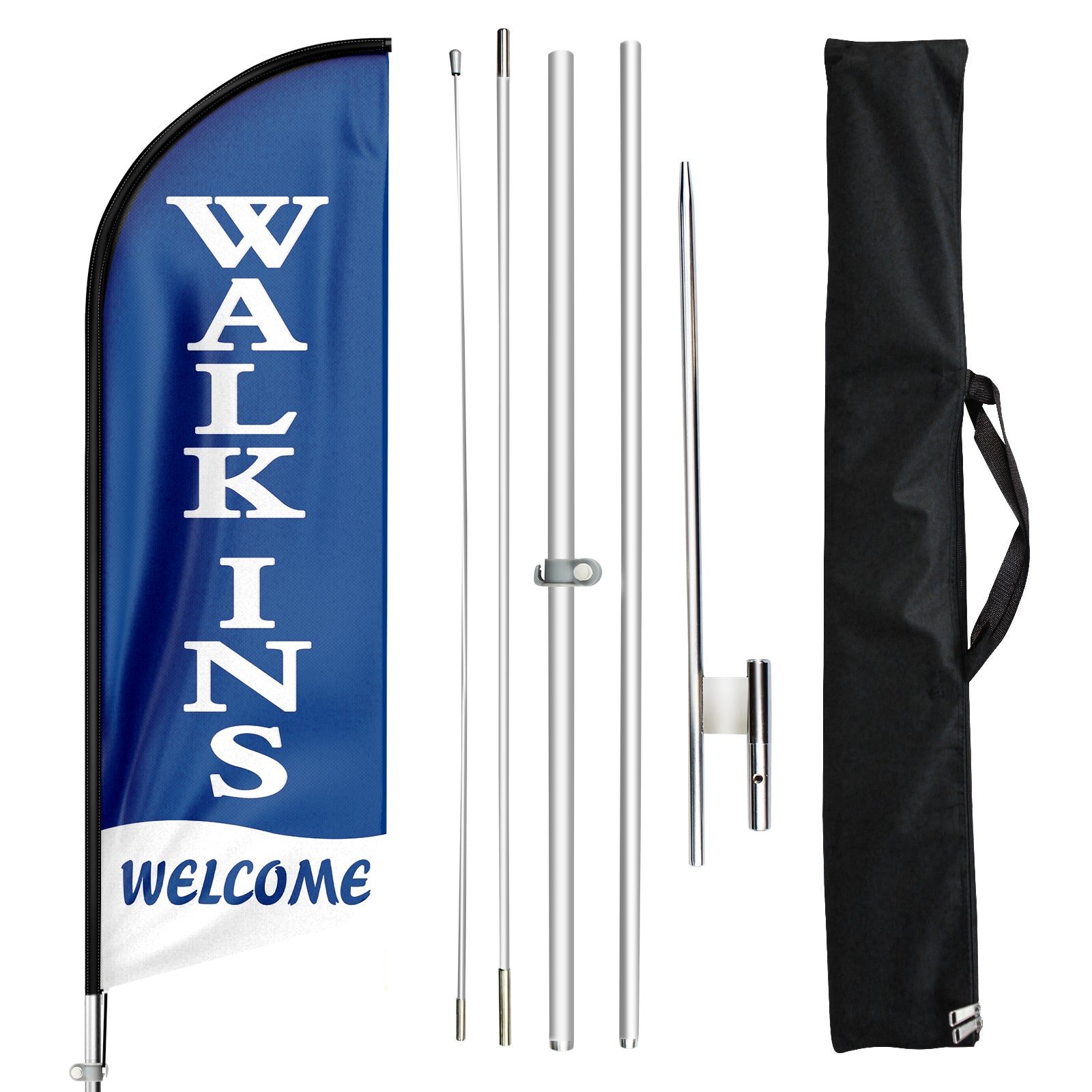 - 🏠【Easy To Assemble and Disassemble】Just snap the pieces together and put the stake in the ground or other stand bases to display the Walk Ins Welcome business sign daily and it is portable and easy to pack with the black bag when the feather flag pole kit disassembled.
