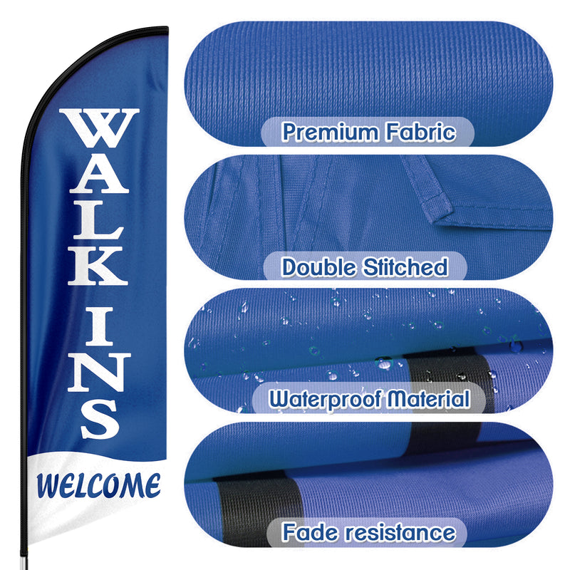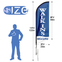- 🏠【Excellent Advertisement Tool】The Walk Ins Welcome feather flag size is very large (11ft/ 330cm) tall and (2.1 ft/ 65cm) wide, visible enough from far away, you may put the feather banner up in front of your business, at the entry or on the sidewalk, really a must-have and cost-effective way to increase traffic to business.