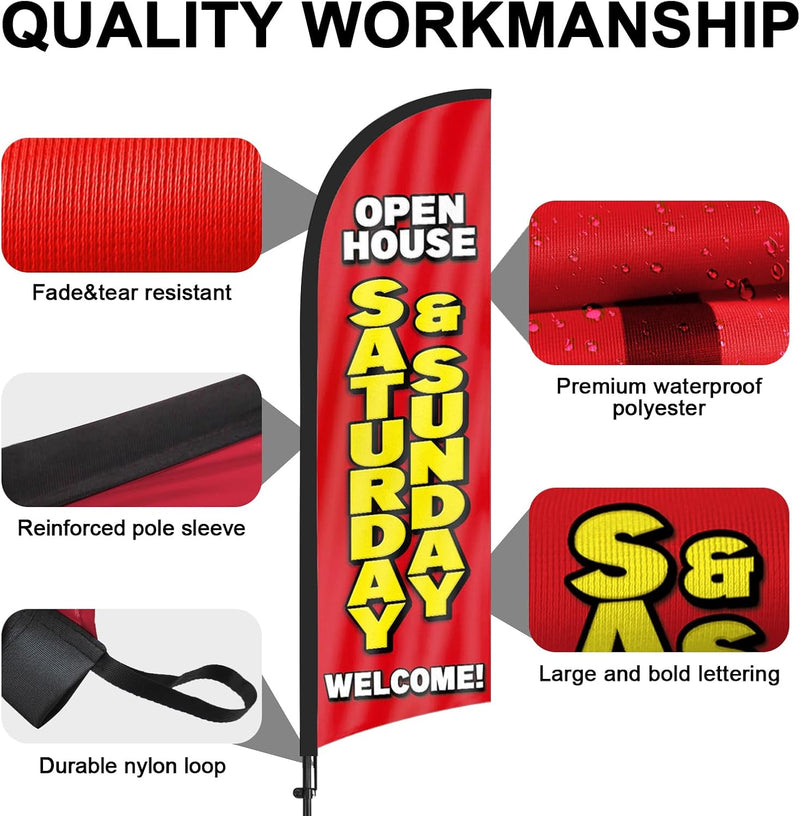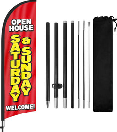 - 【Portable and Easy Setup】This Open House Saturday&Sunday feather flag pole kit includes 1 swooper flag+6 rods+1 ground stake and comes with 1 carry bag. They can be quickly set up and taken down, requiring minimal effort.