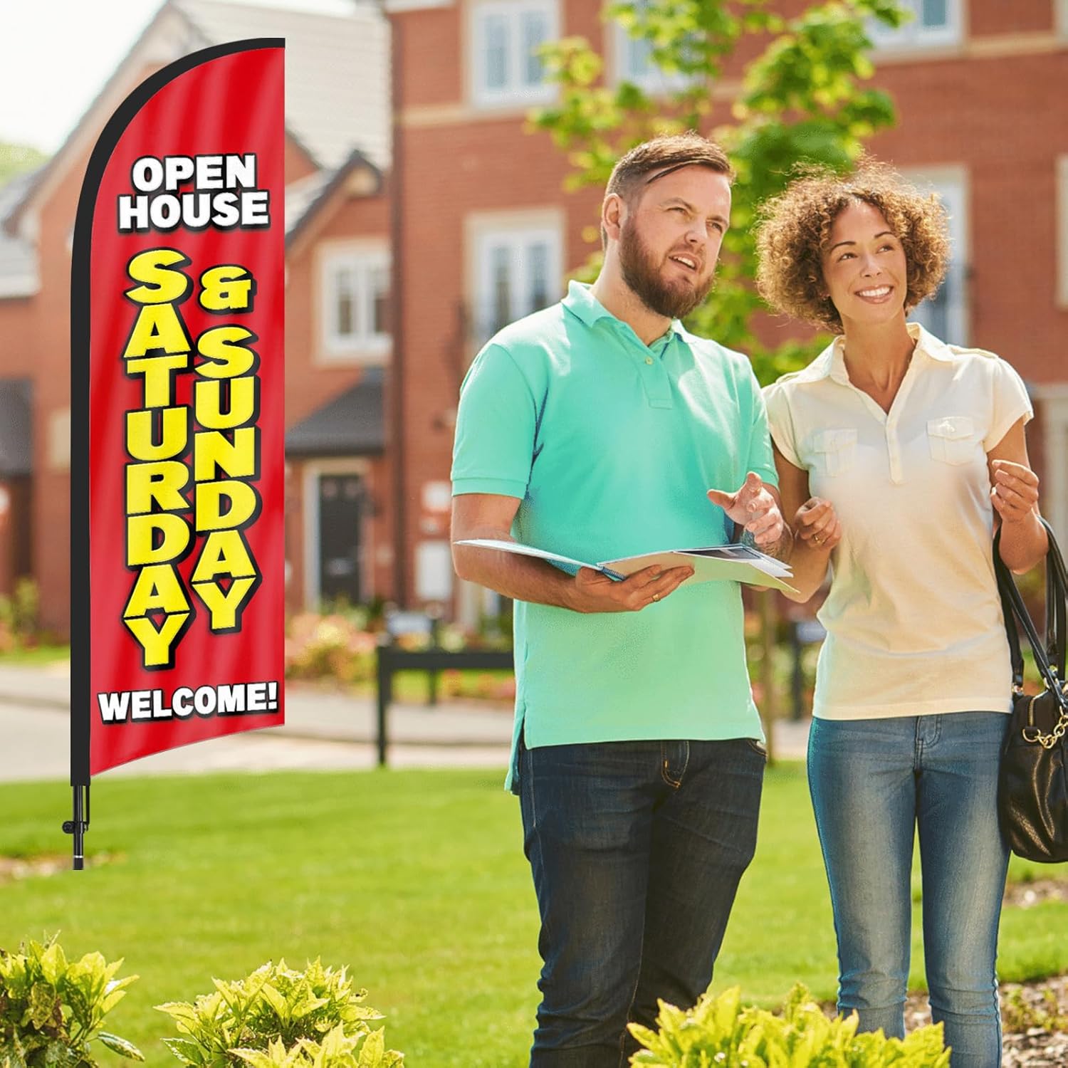 - 【Attention-Grabbing】Open House Saturday&Sunday feather flags stand tall and sway with the wind, making them highly visible and attention-grabbing. The Open House Saturday&Sunday flags’ unique shape and vibrant colors make them stand out in crowded environments, attracting many potential customers from a distance.