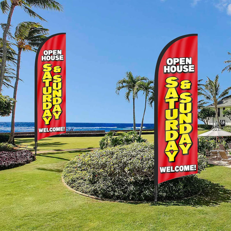 - 【Cost-Effective Advertising】The Open House Saturday&Sunday sign offer a cost-effective advertising solution compared to other traditional forms of outdoor advertising. This Open House Saturday&Sunday flag size is (8.2ft/98in) tall and (1.8ft/22in) wide, visible enough from far away, ensures your business stands out from the crowd, grabbing attention and increasing foot traffic.
