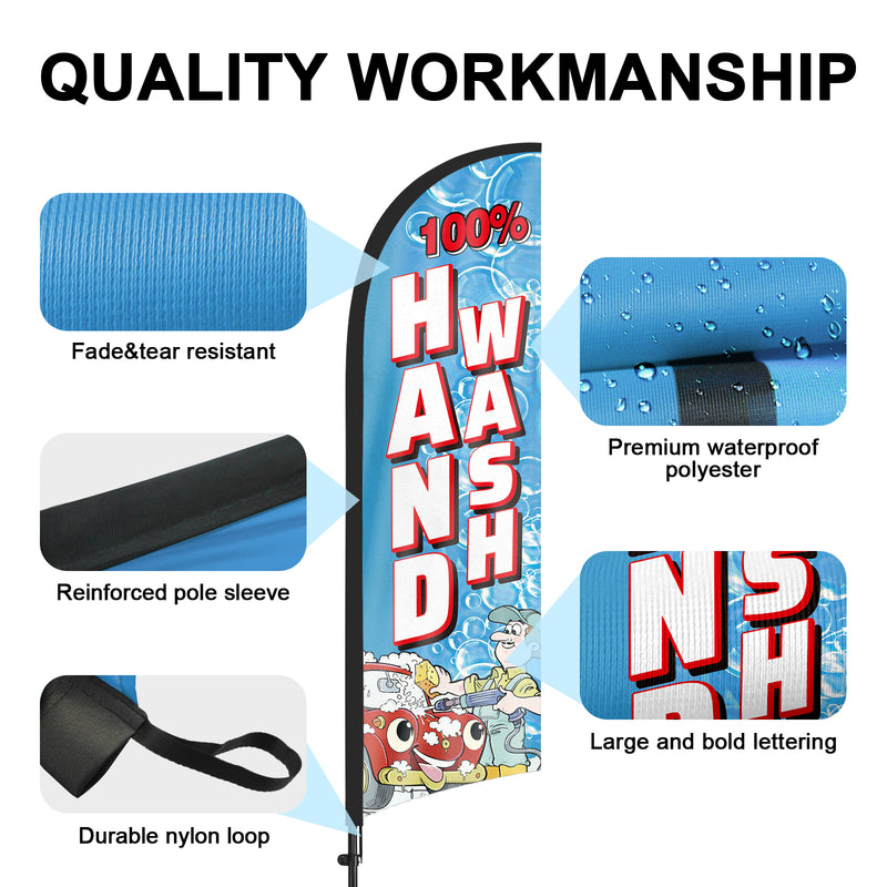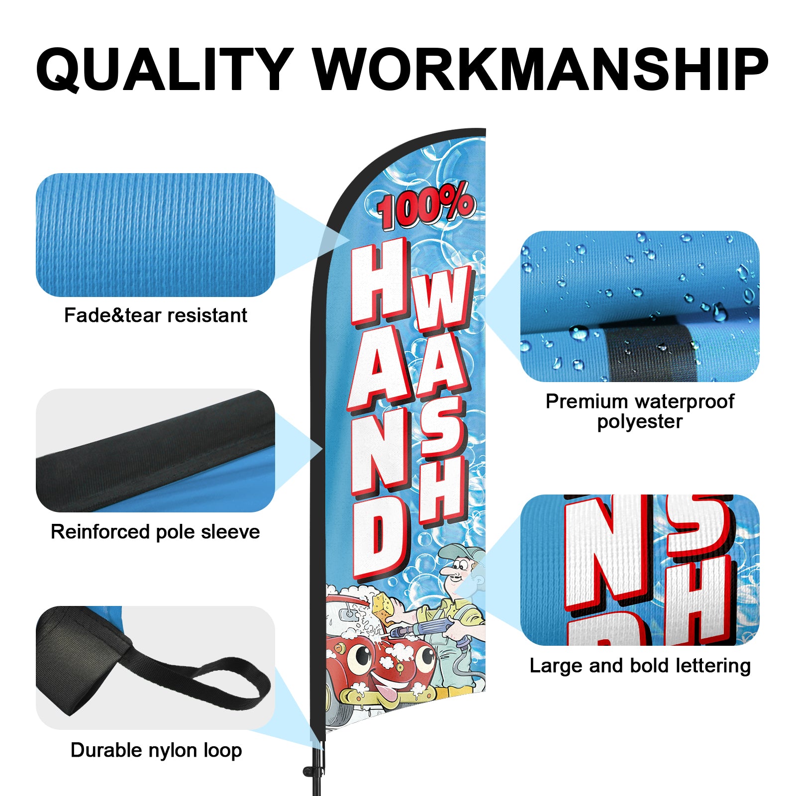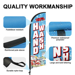 - 【Attention-Grabbing】Hand Wash feather flags stand tall and sway with the wind, making them highly visible and attention-grabbing. The Hand Wash flags’ unique shape and vibrant colors make them stand out in crowded environments, attracting many potential customers from a distance.