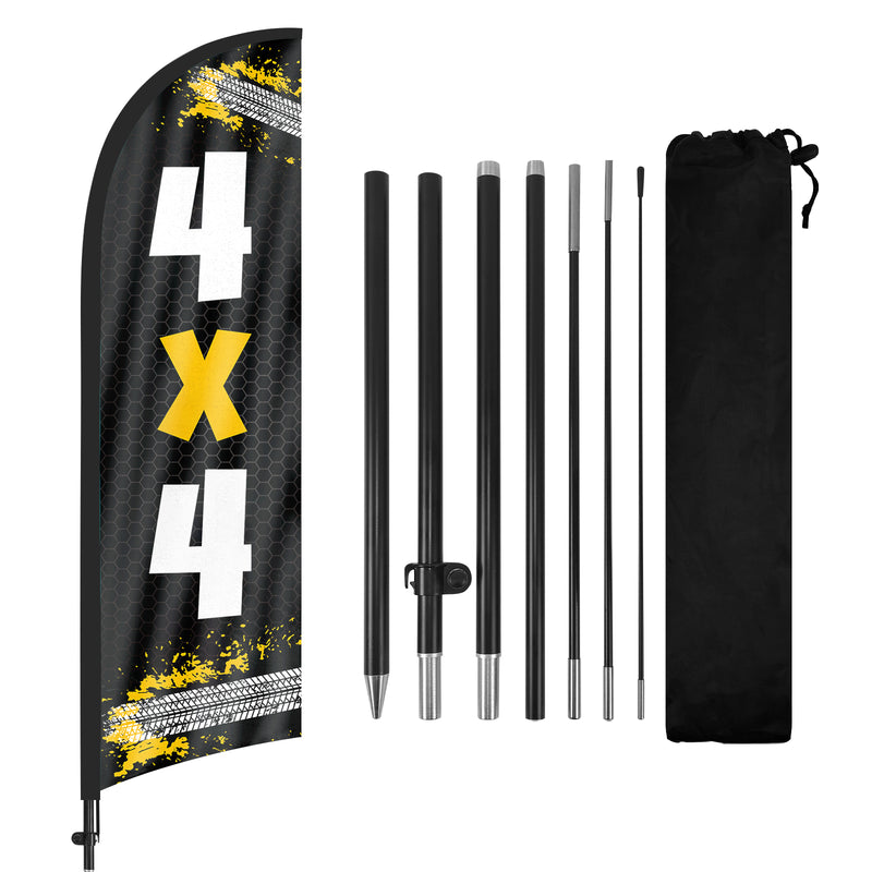8ft 4X4 Auto Black Feather Flag with Pole and Stake