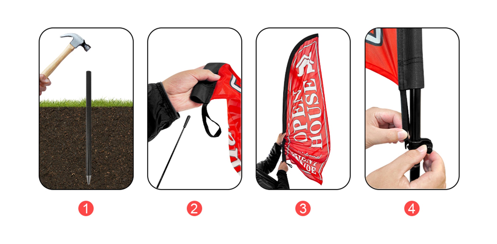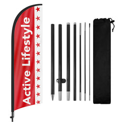 - 【Portable and Easy Setup】This feather flag pole kit includes 1 swooper flag+6 rods+1 ground stake and comes with 1 carry bag. They can be quickly set up and taken down, requiring minimal effort.