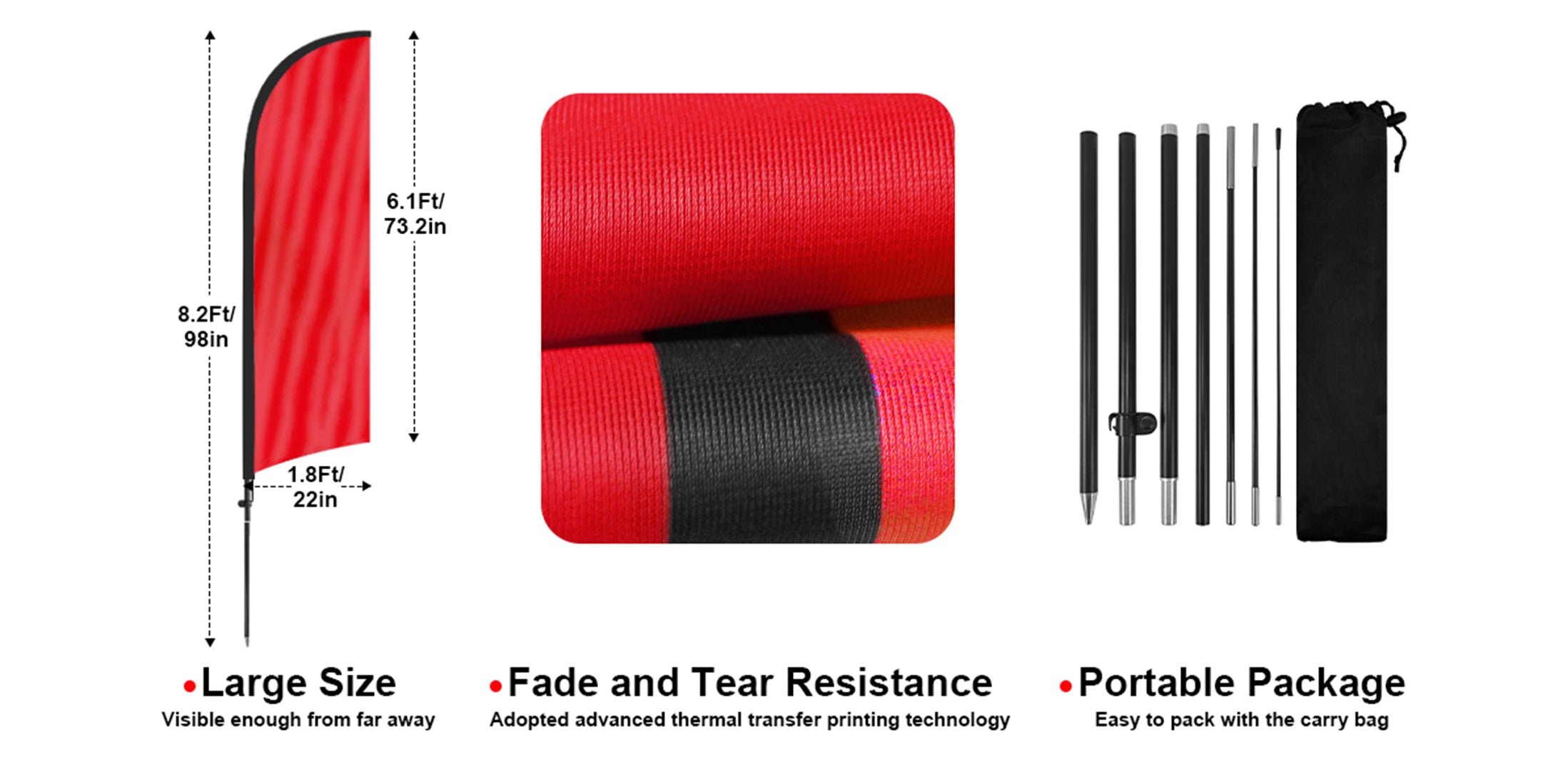 - 【Cost-Effective Advertising】The sign offer a cost-effective advertising solution compared to other traditional forms of outdoor advertising. This flag size is (8.2ft/98in) tall and (1.8ft/22in) wide, visible enough from far away, ensures your business stands out from the crowd, grabbing attention and increasing foot traffic.