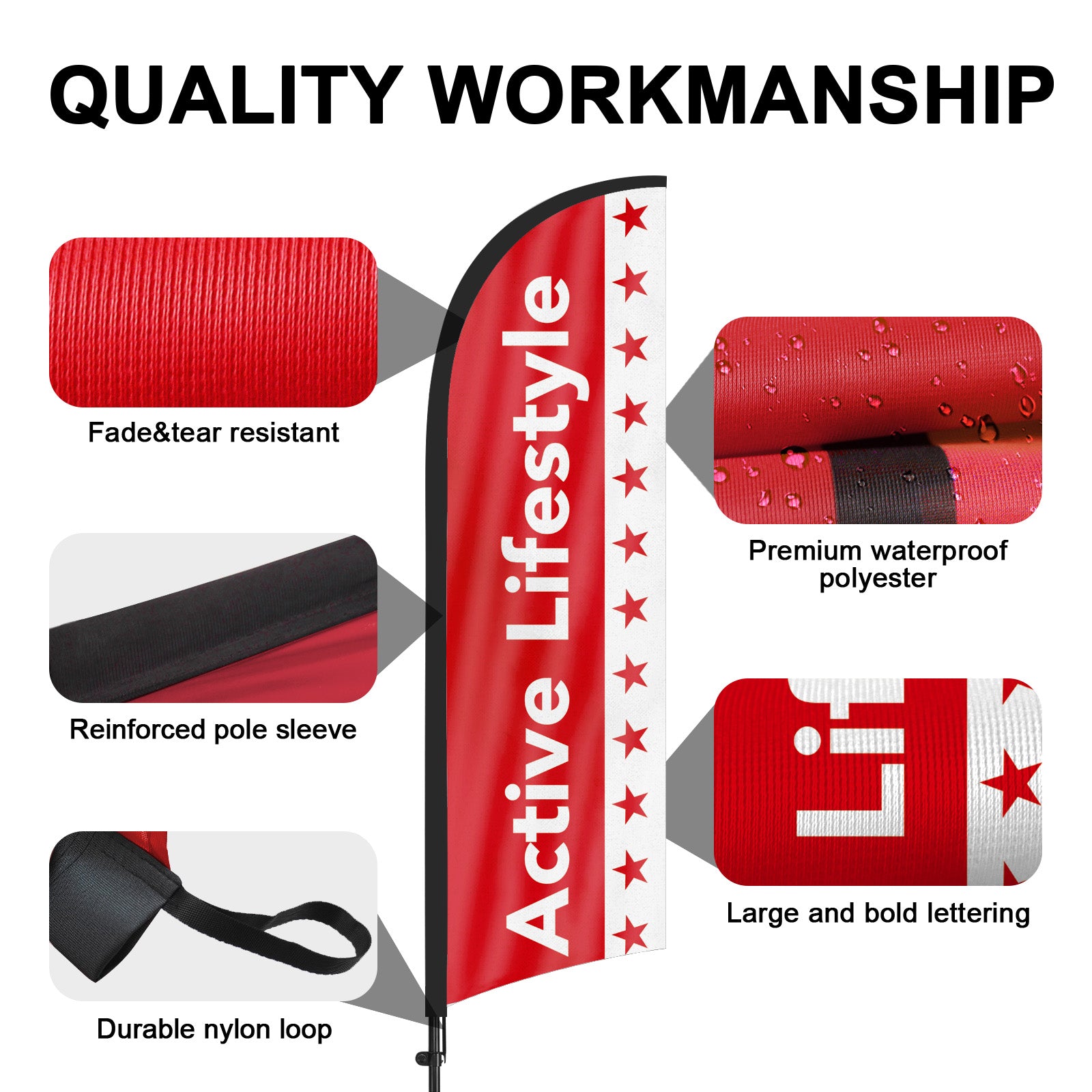 - 【Weather Resistance】These feather flags are designed to withstand various weather conditions, high-quality aluminum and fiberglass pole, tear resistant polyester fabric making it sturdy and heavy-duty to be held up well even in rain, snow, sleet and strong winds.