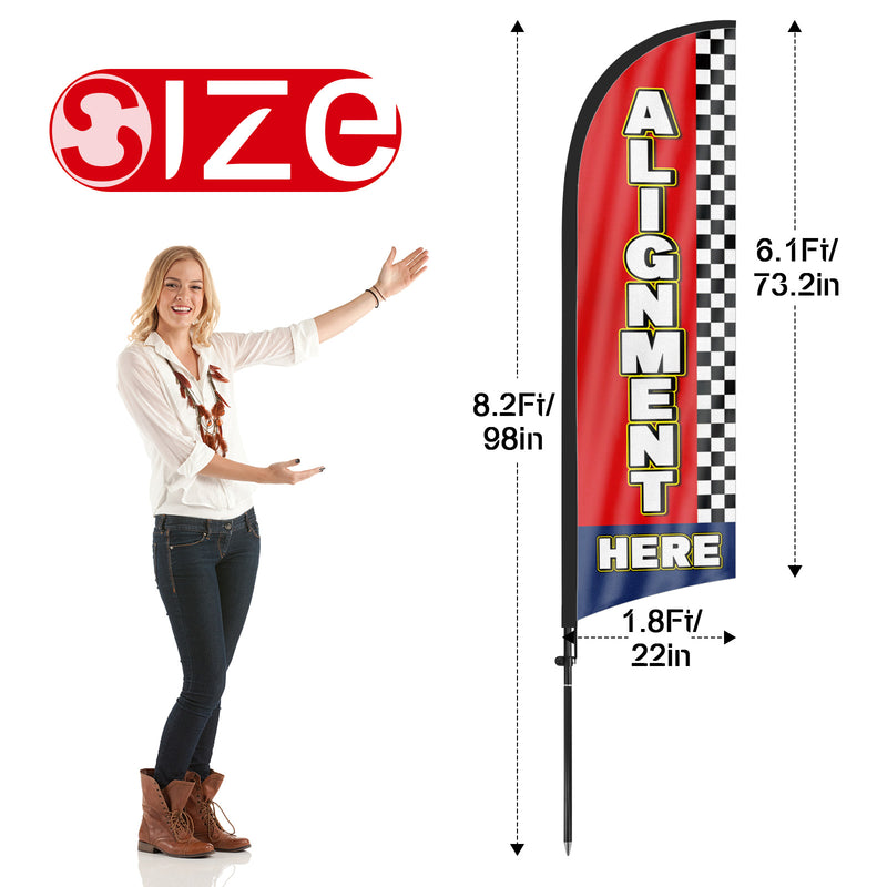- 【Cost-Effective Advertising】The sign offer a cost-effective advertising solution compared to other traditional forms of outdoor advertising. This flag size is (8.2ft/98in) tall and (1.8ft/22in) wide, visible enough from far away, ensures your business stands out from the crowd, grabbing attention and increasing foot traffic.