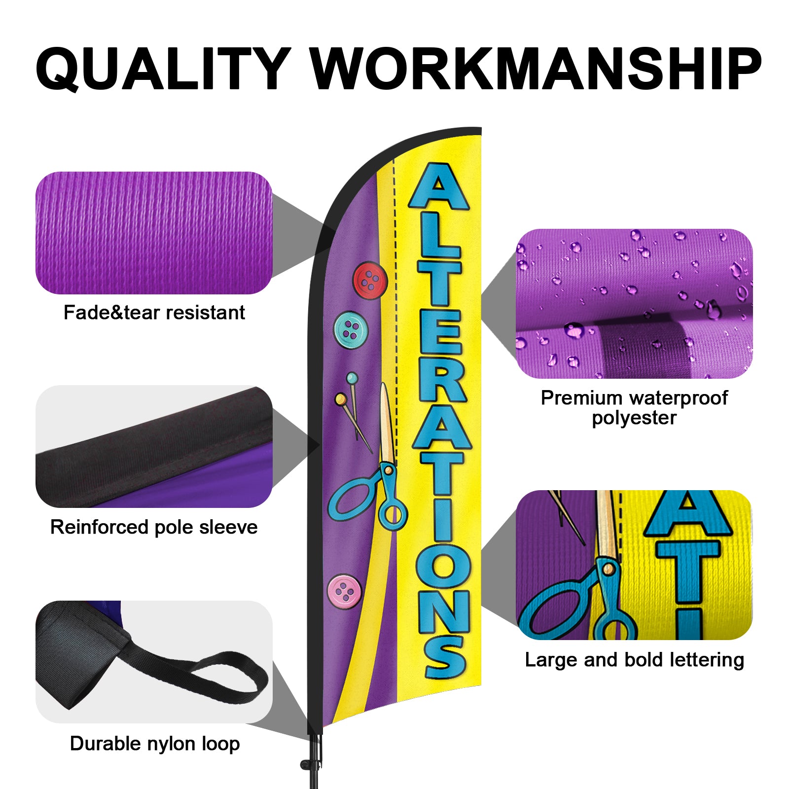 8Ft Alterations Feather Flag with Pole & Stake