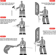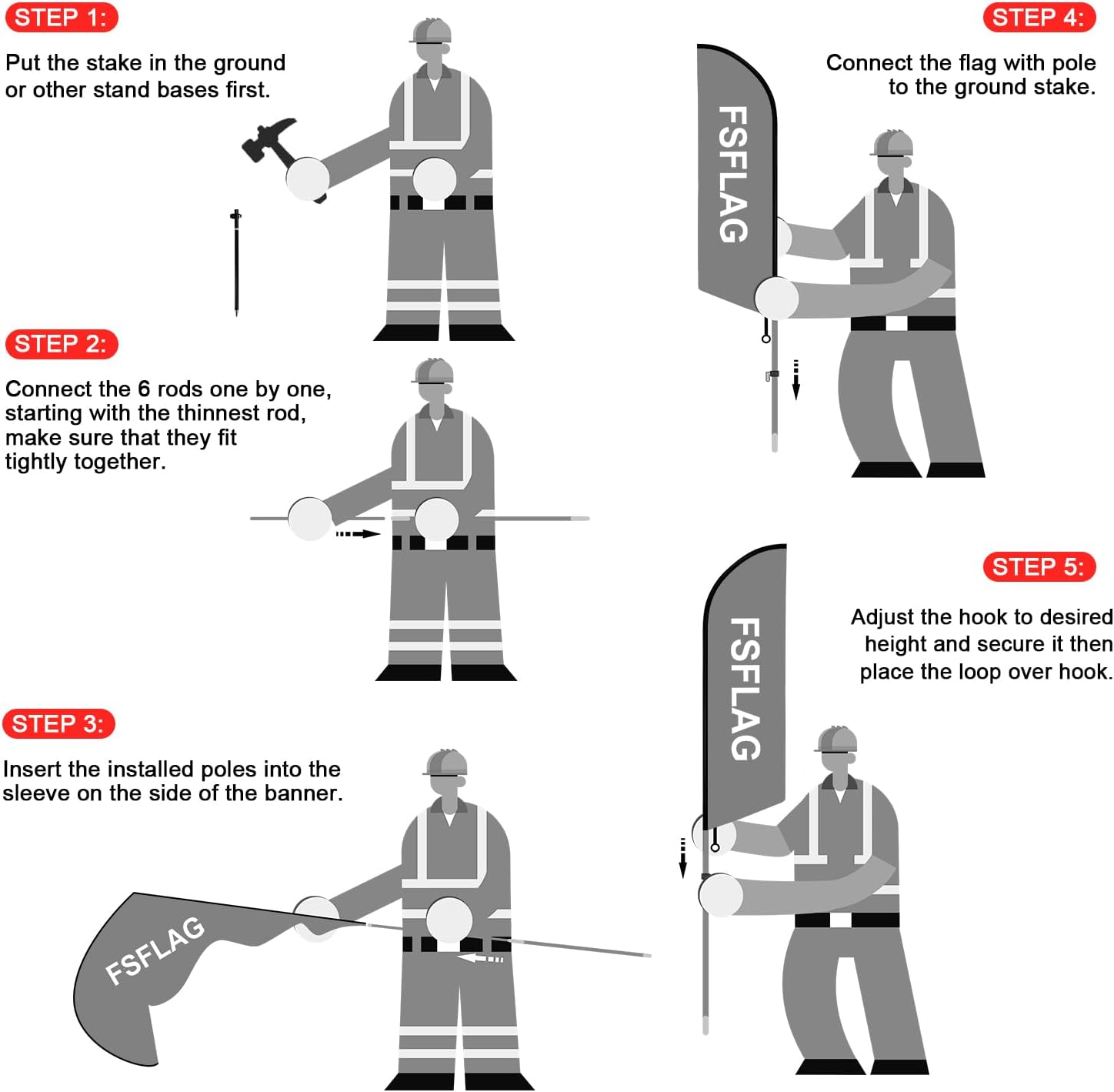 - 【Portable and Easy Setup】This BBQ feather flag pole kit includes 1 swooper flag+6 rods+1 ground stake and comes with 1 carry bag. They can be quickly set up and taken down, requiring minimal effort.