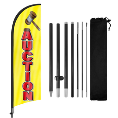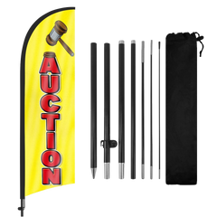 - 【Portable and Easy Setup】This Auction feather flag pole kit includes 1 swooper flag+6 rods+1 ground stake and comes with 1 carry bag. They can be quickly set up and taken down, requiring minimal effort.