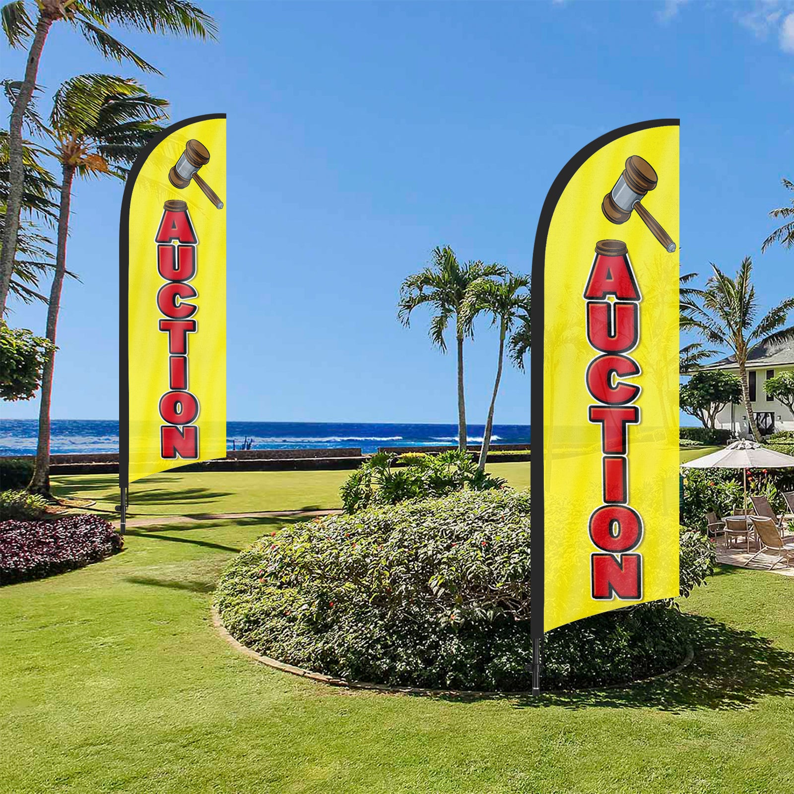 - 【Cost-Effective Advertising】The Auction sign offer a cost-effective advertising solution compared to other traditional forms of outdoor advertising. This Auction flag size is (8.2ft/98in) tall and (1.8ft/22in) wide, visible enough from far away, ensures your business stands out from the crowd, grabbing attention and increasing foot traffic.