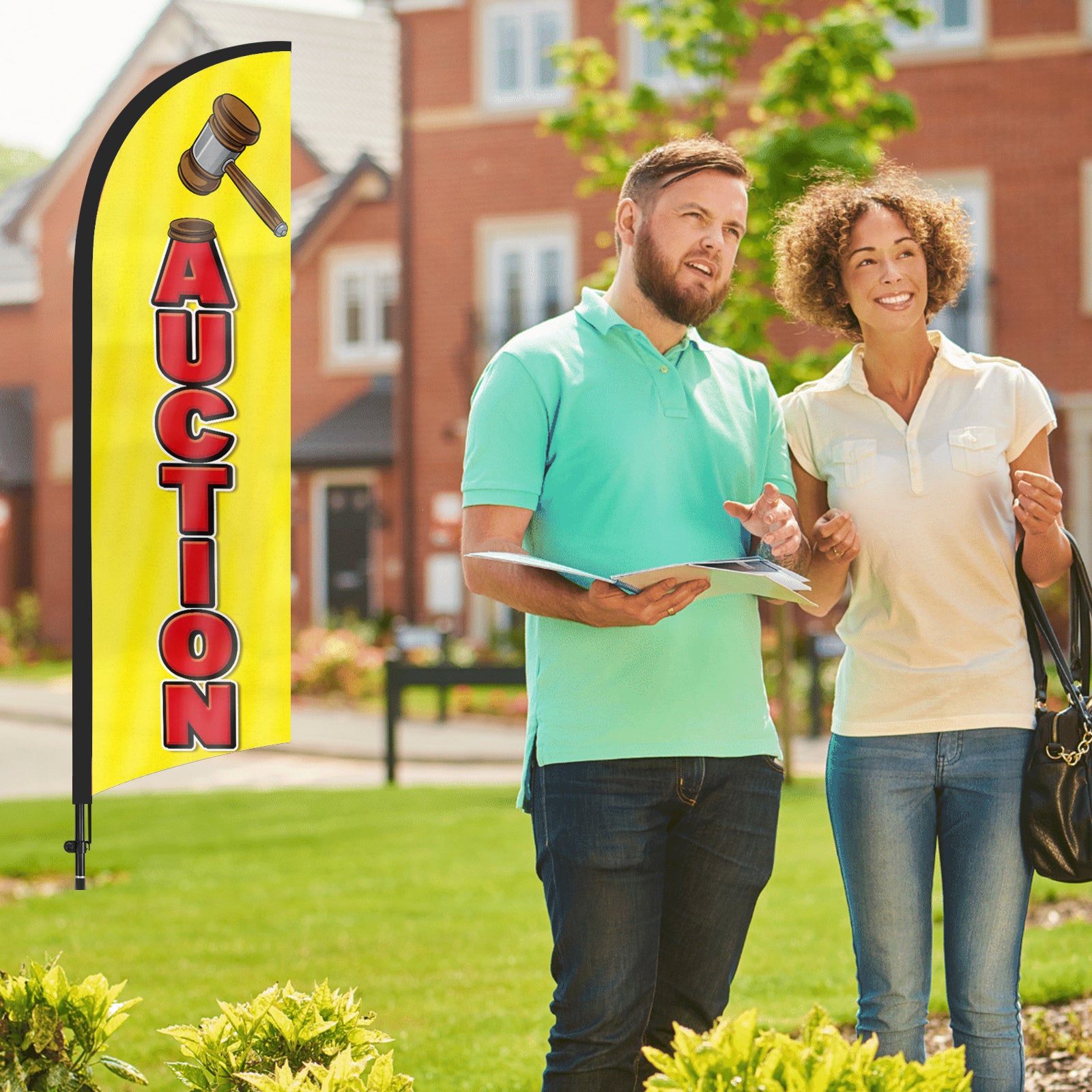 - 【Attention-Grabbing】Auction feather flags stand tall and sway with the wind, making them highly visible and attention-grabbing. The Auction flags’ unique shape and vibrant colors make them stand out in crowded environments, attracting many potential customers from a distance.