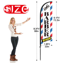 - 【Cost-Effective Advertising】The barber flag offer a cost-effective advertising solution compared to other traditional forms of outdoor advertising. This barbershop flag size is (8.2ft/98in) tall and (1.8ft/22in) wide, visible enough from far away, ensures your business stands out from the crowd, grabbing attention and increasing foot traffic.
