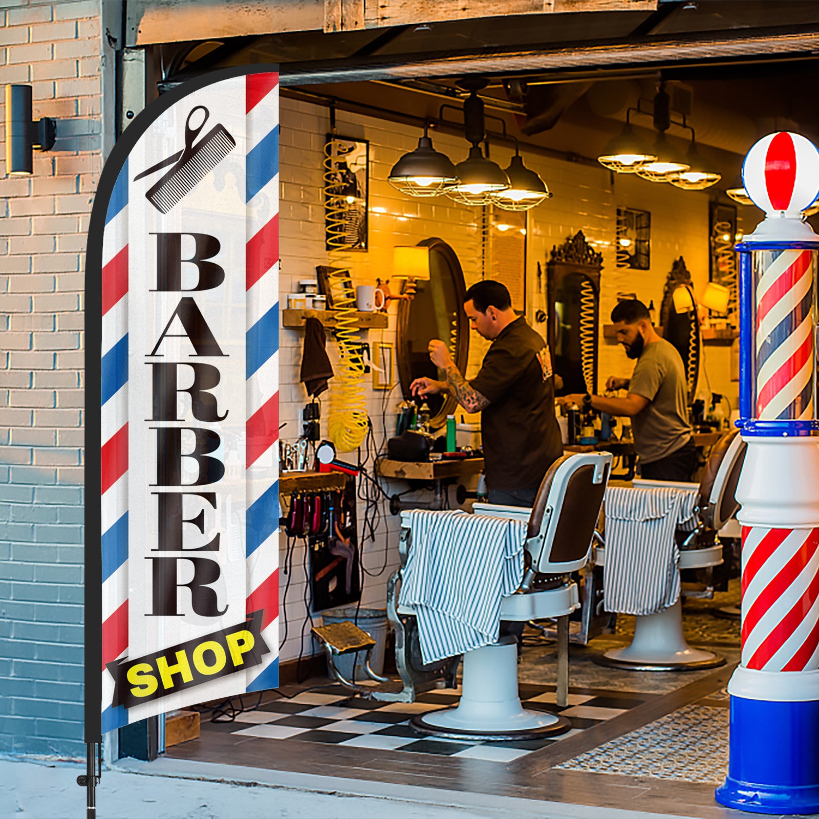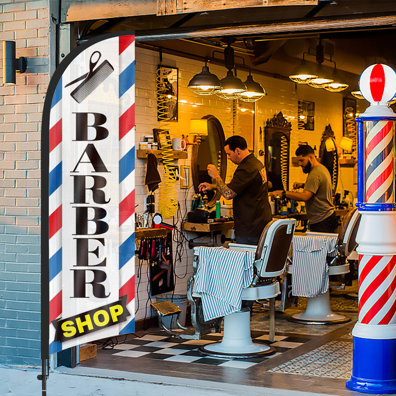 8Ft Barber Shop 05 Feather Flag Kit for Barbershop Business