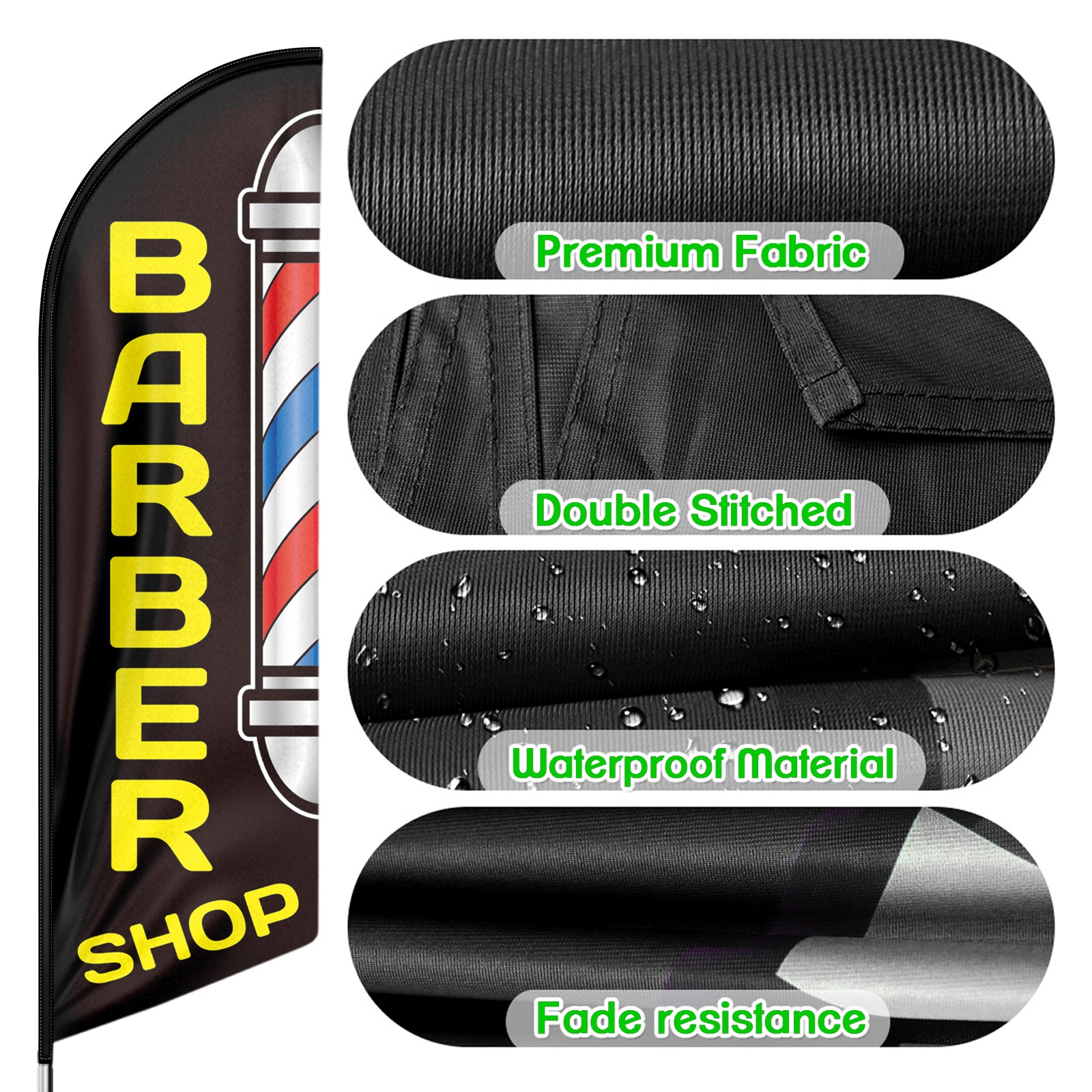 - 【Excellent Advertisement Tool】The Barber Shop feather flag size is very large (8Ft/96in x 2 Ft/25in) visible enough from far away, you may put the feather banner up in front of your business, at the entry or on the sidewalk.