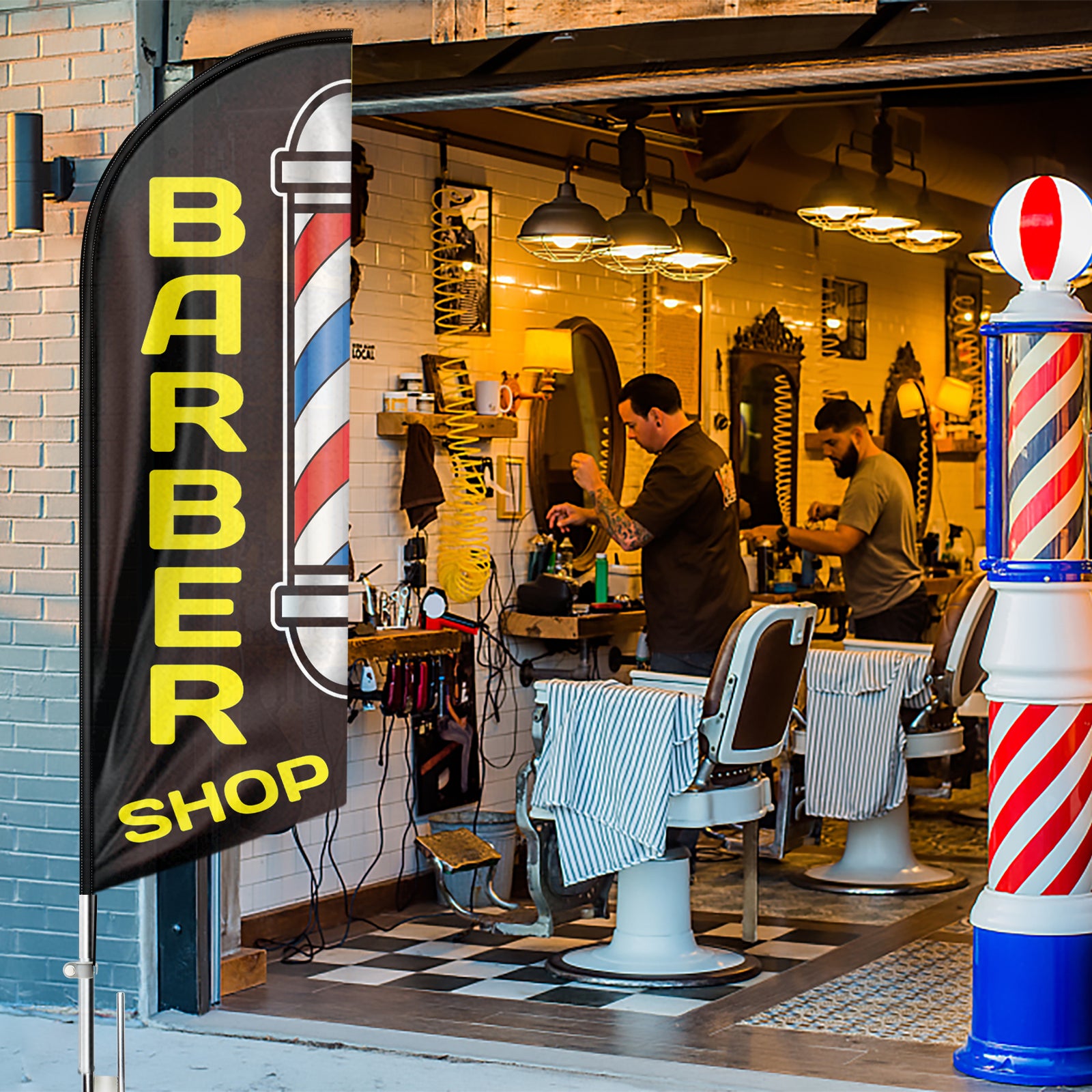 - 【Cost-effective】A must-have and cost-effective way to increase traffic to business. Put the stake in the ground or other stand bases to display the Barber Shop flag sign daily.