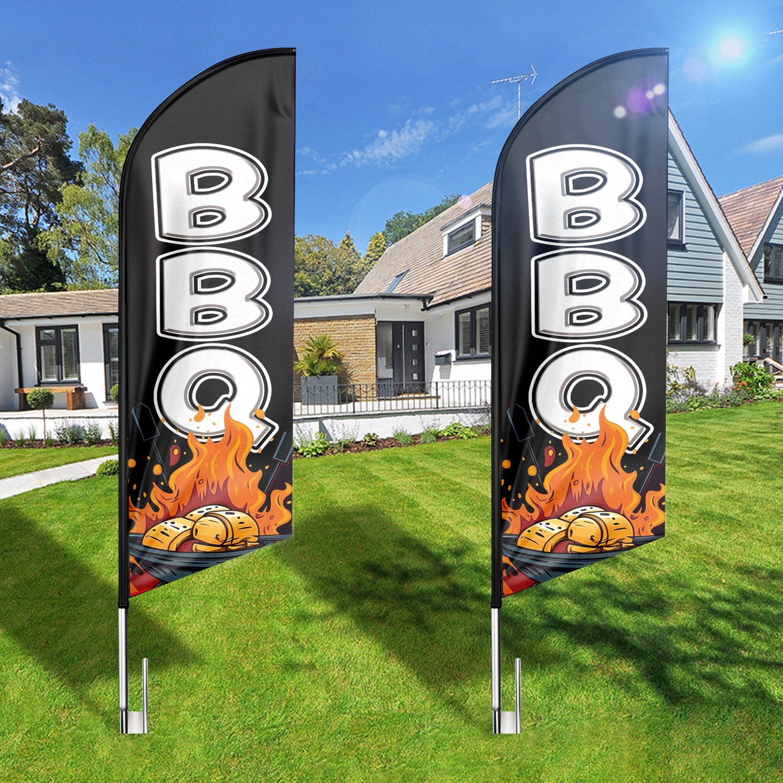 - 【Cost-effective】A must-have and cost-effective way to increase traffic to business. Put the stake in the ground or other stand bases to display the BBQ flag sign daily.