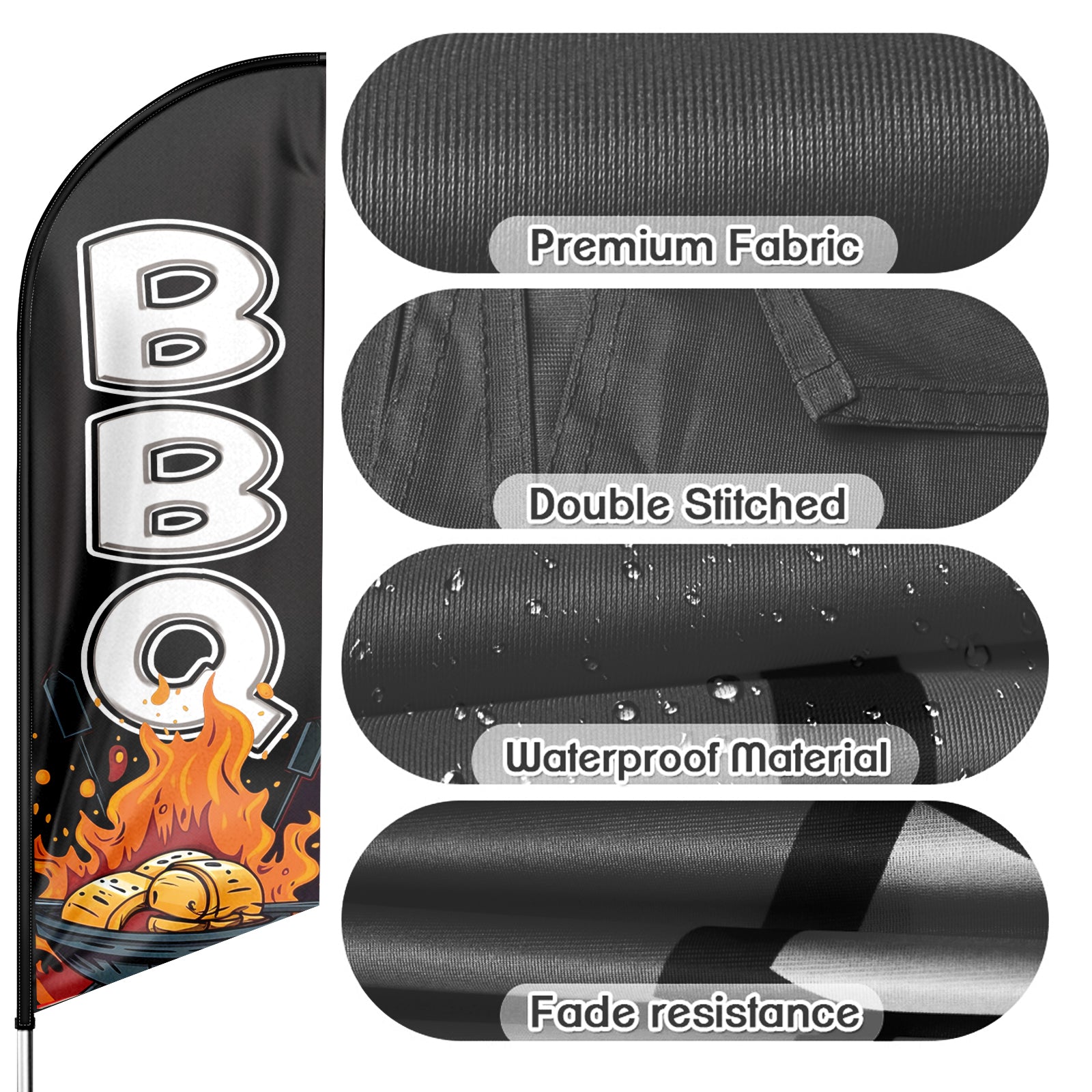 - 【Excellent Advertisement Tool】The BBQ feather flag size is very large (8Ft/96in x 2 Ft/25in) visible enough from far away, you may put the feather banner up in front of your business, at the entry or on the sidewalk.
