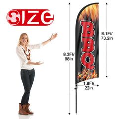 - 【Cost-Effective Advertising】The BBQ sign offer a cost-effective advertising solution compared to other traditional forms of outdoor advertising. This BBQ flag size is (8.2ft/98in) tall and (1.8ft/22in) wide, visible enough from far away, ensures your business stands out from the crowd, grabbing attention and increasing foot traffic.