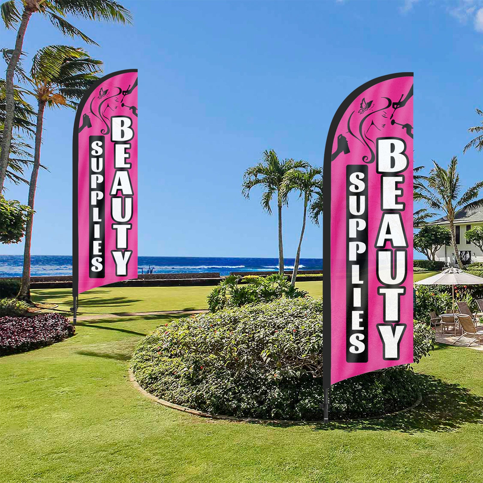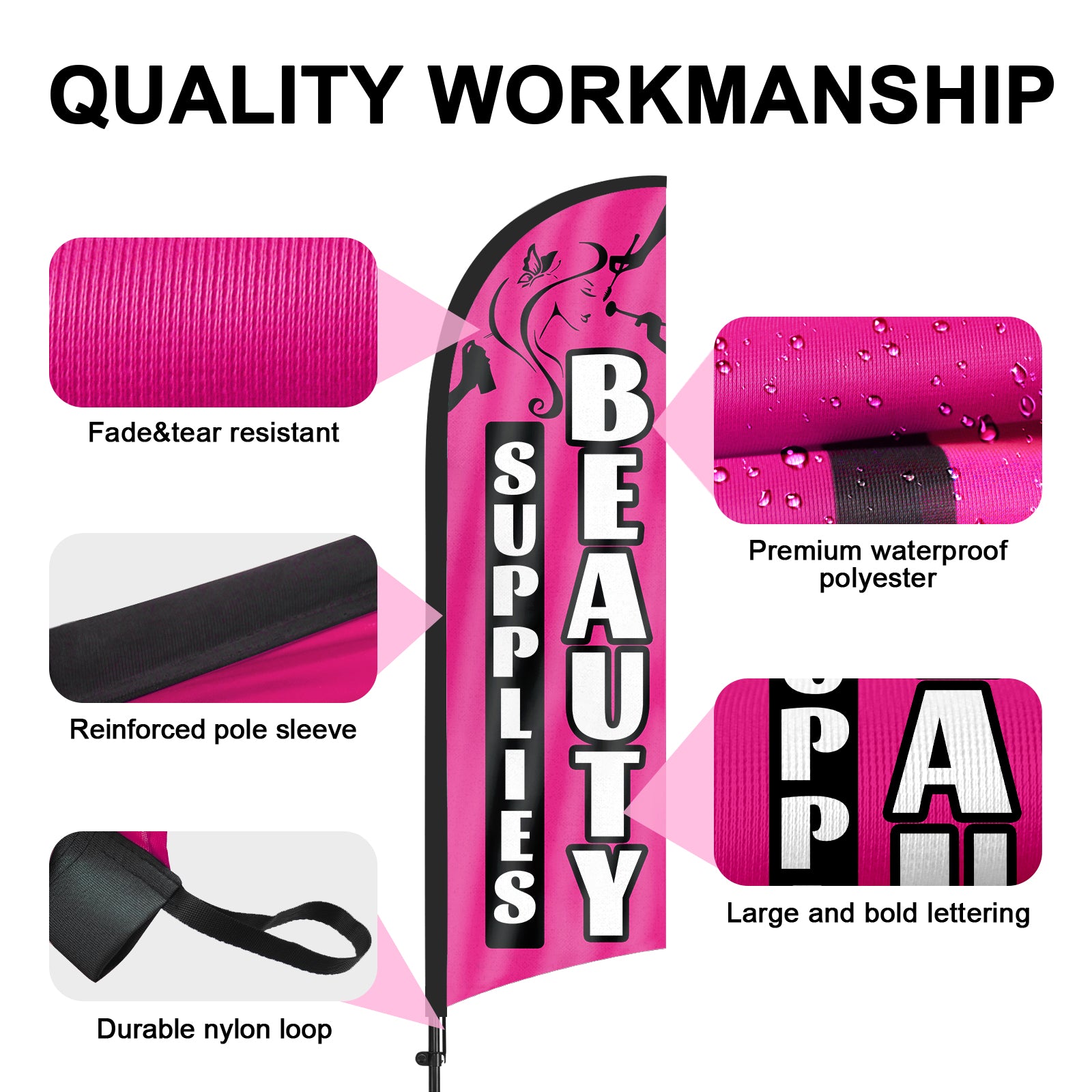 8Ft Beauty Supplies Pink Feather Flag Kit for Business