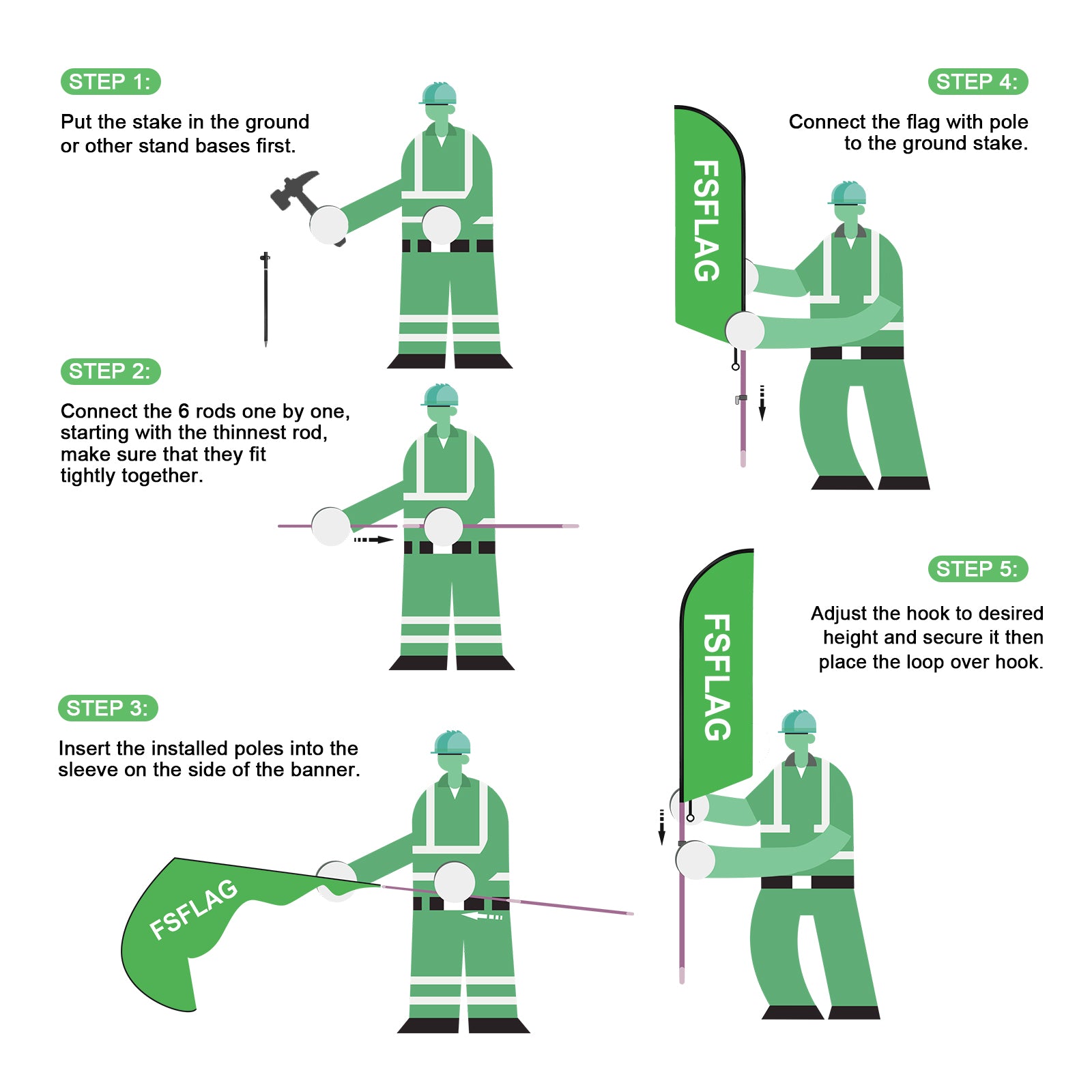 - 【Portable and Easy Setup】This feather flag pole kit includes 1 swooper flag+6 rods+1 ground stake and comes with 1 carry bag. They can be quickly set up and taken down, requiring minimal effort.