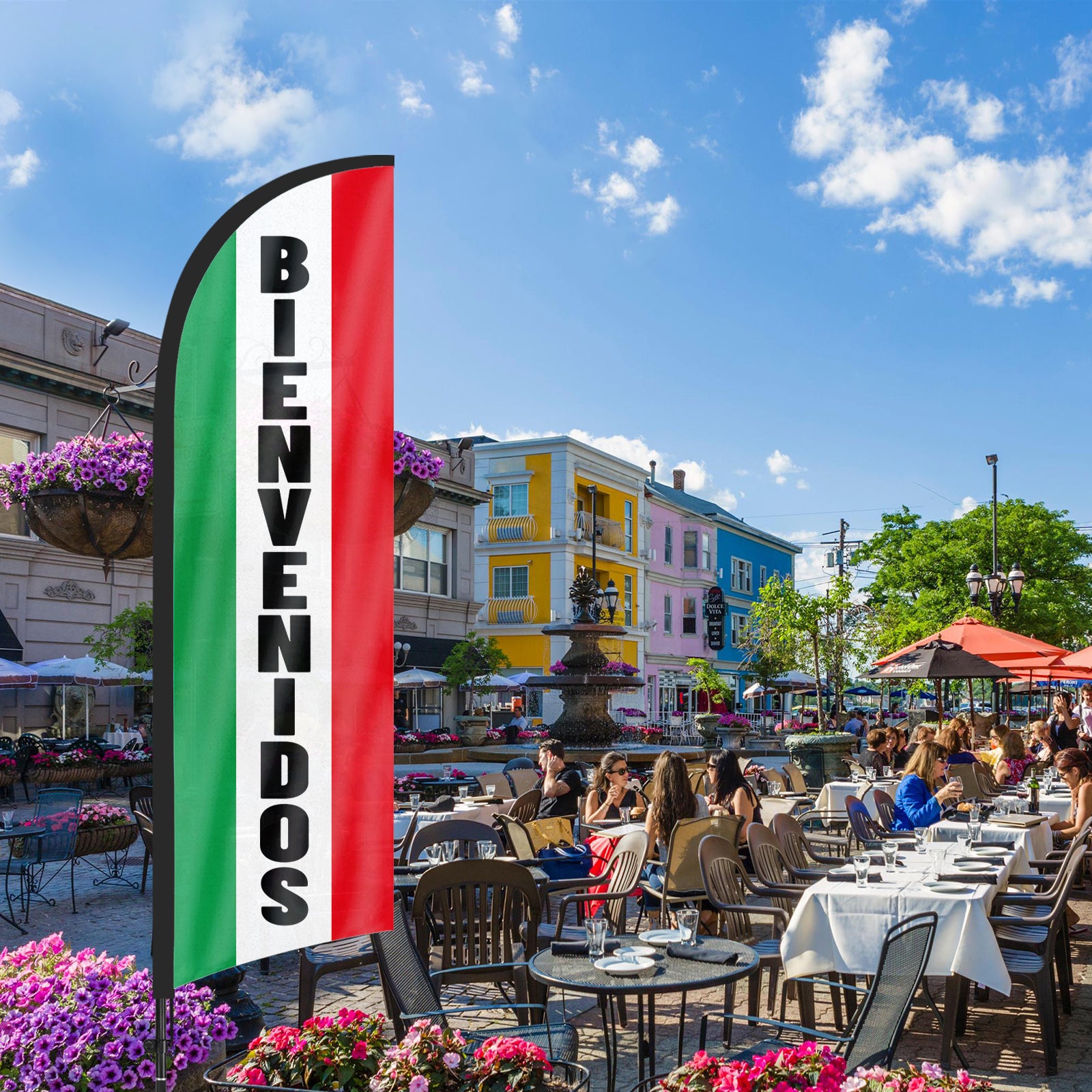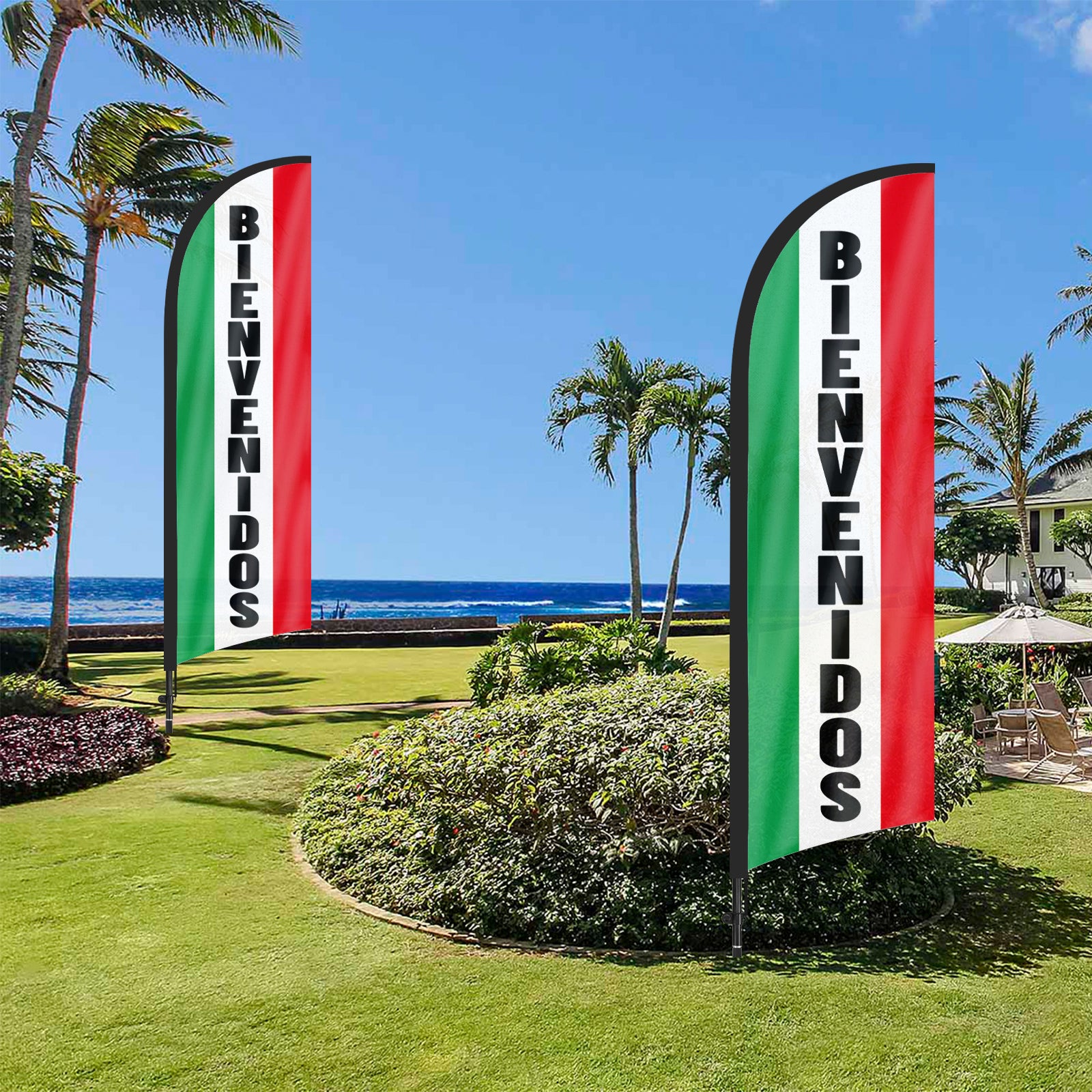 8ft Bienvenidos Green Feather Flag Pole Kit