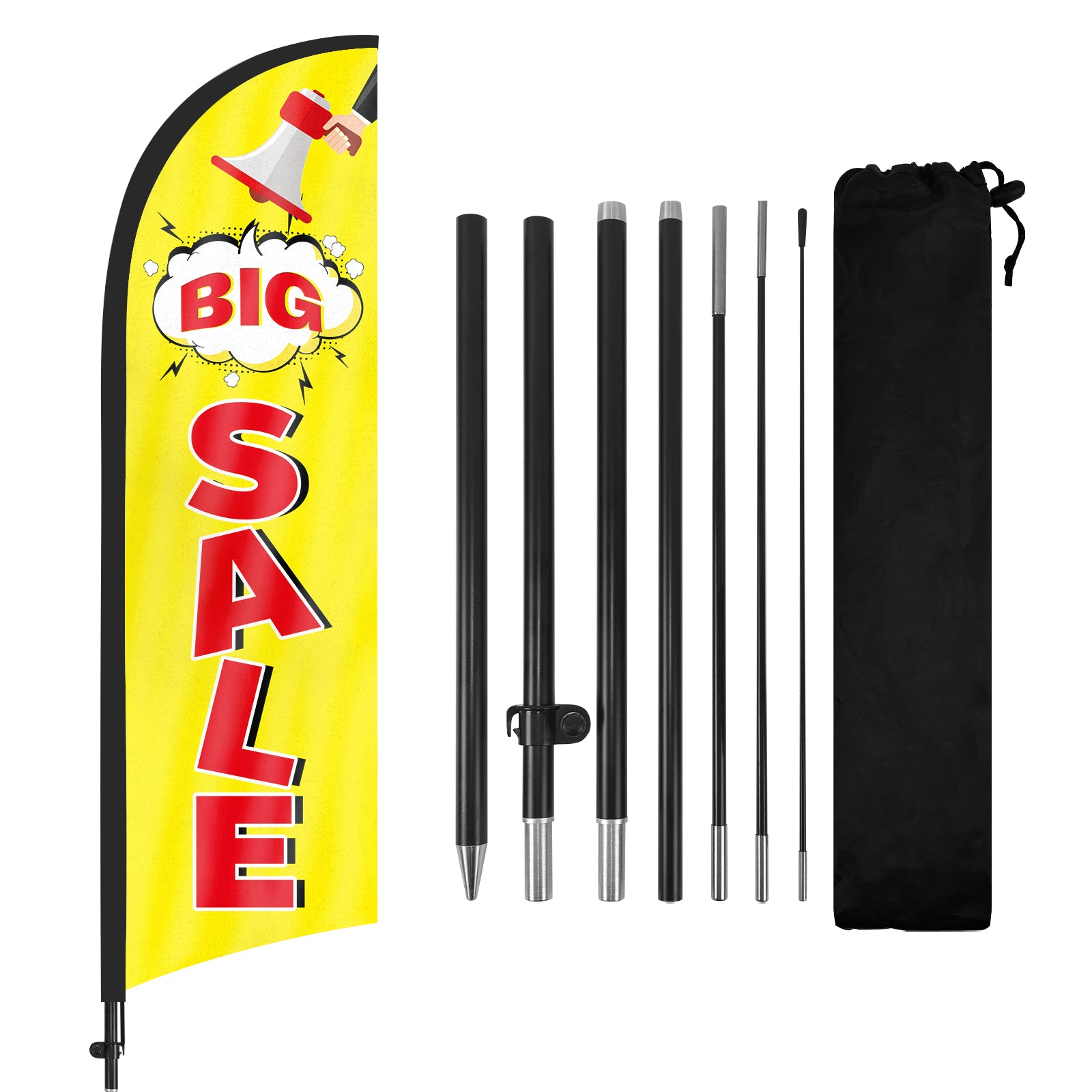 - 【Attention-Grabbing】Big Sale feather flags stand tall and sway with the wind, making them highly visible and attention-grabbing. The Big Sale flags’ unique shape and vibrant colors make them stand out in crowded environments, attracting many potential customers from a distance.
