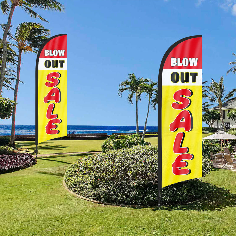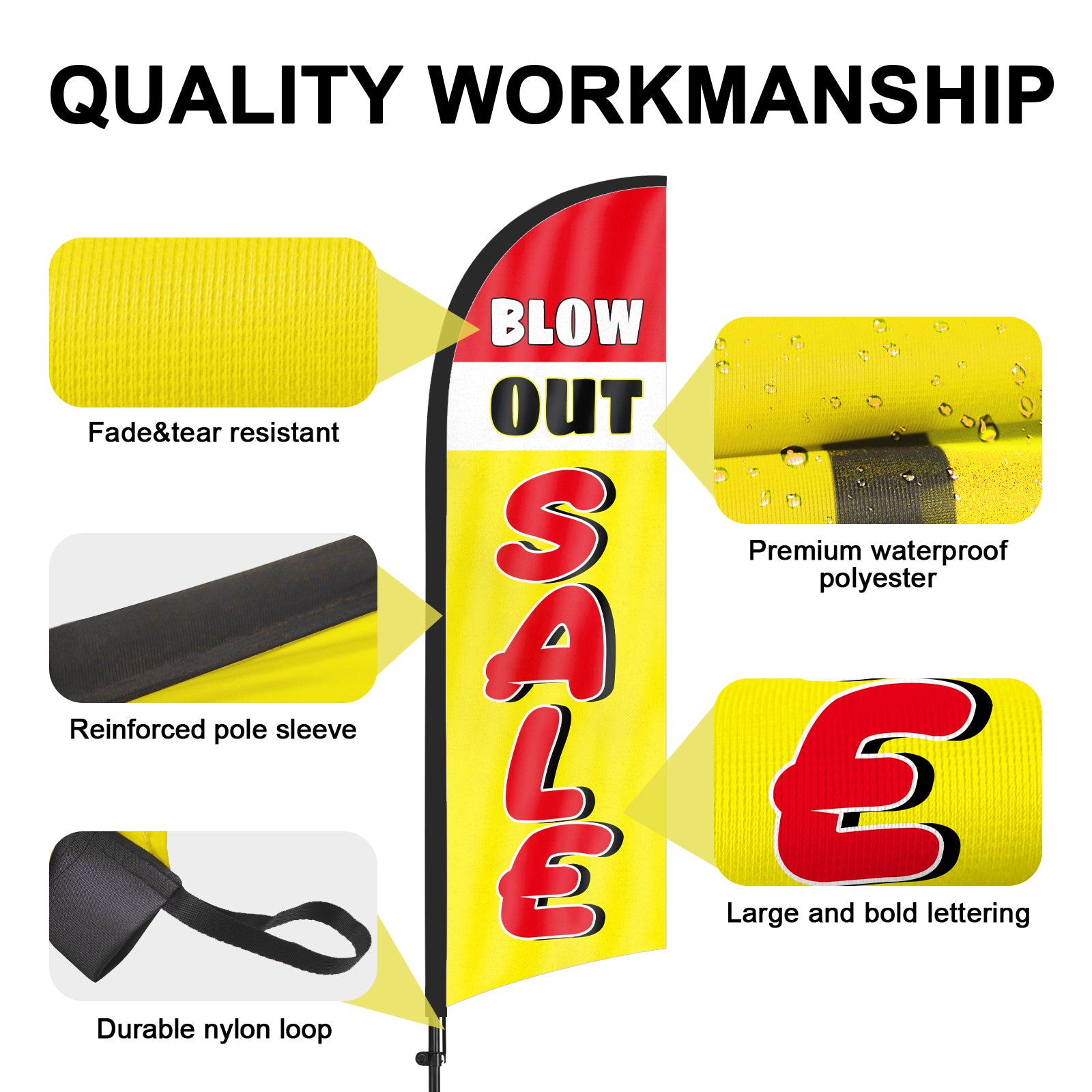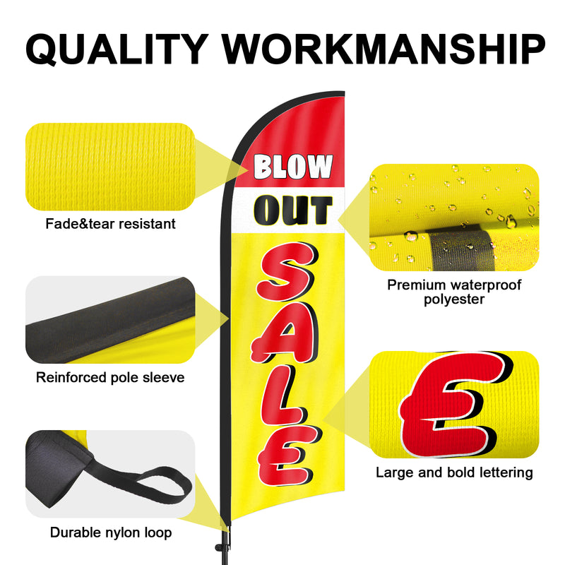 - 【Attention-Grabbing】Blowout Sale feather flags stand tall and sway with the wind, making them highly visible and attention-grabbing. The Blowout Sale flags’ unique shape and vibrant colors make them stand out in crowded environments, attracting many potential customers from a distance.