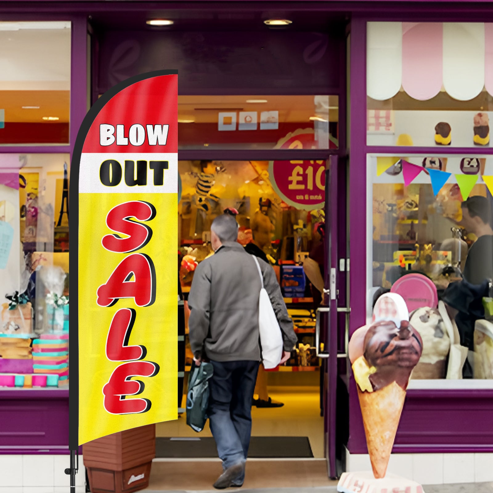 - 【Cost-Effective Advertising】The Blowout Sale sign offer a cost-effective advertising solution compared to other traditional forms of outdoor advertising. This Blowout Sale flag size is (8.2ft/98in) tall and (1.8ft/22in) wide, visible enough from far away, ensures your business stands out from the crowd, grabbing attention and increasing foot traffic.
