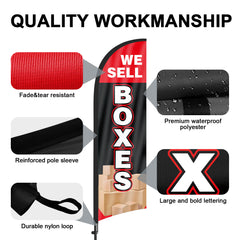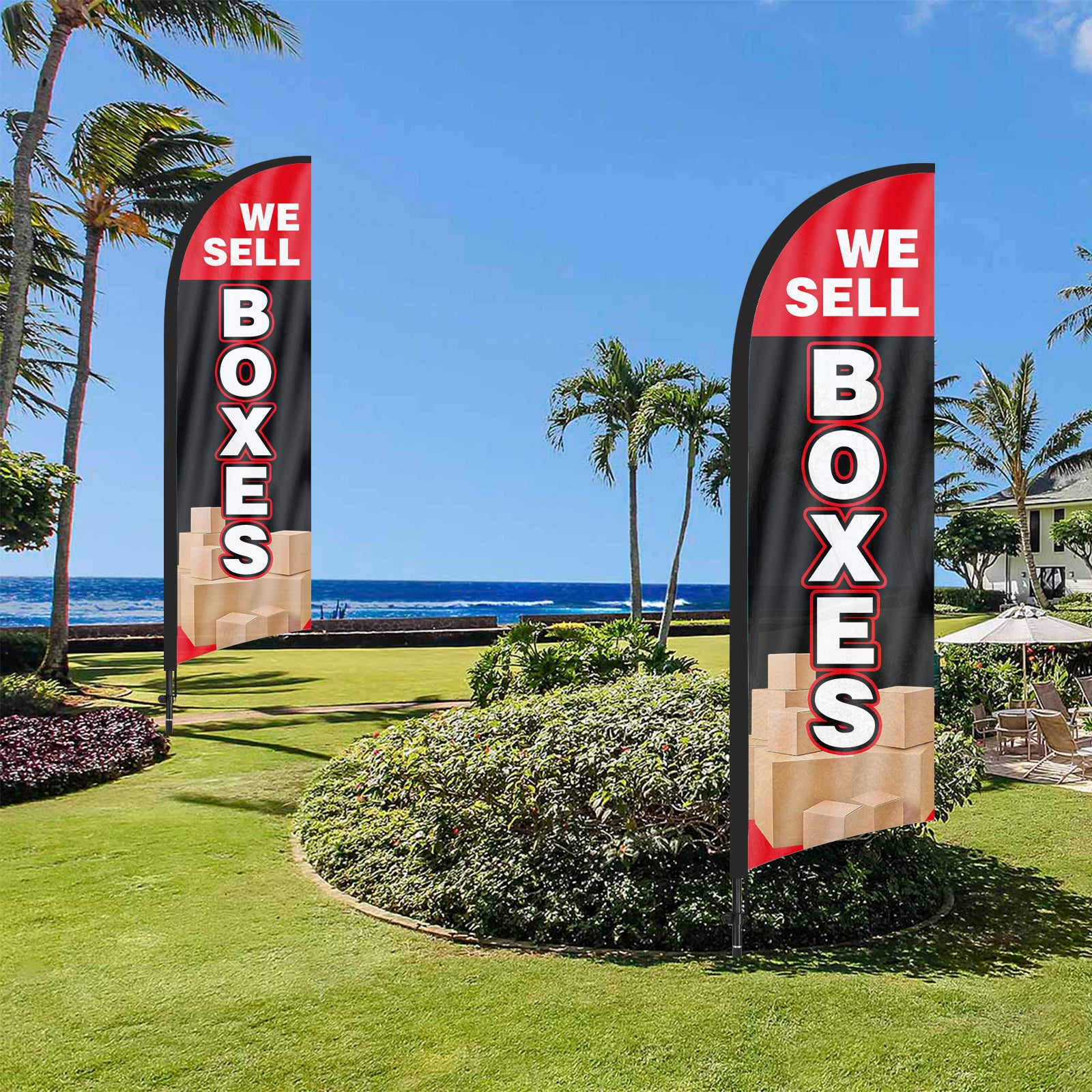 8Ft Boxes Black Feather Flag with Pole & Stake