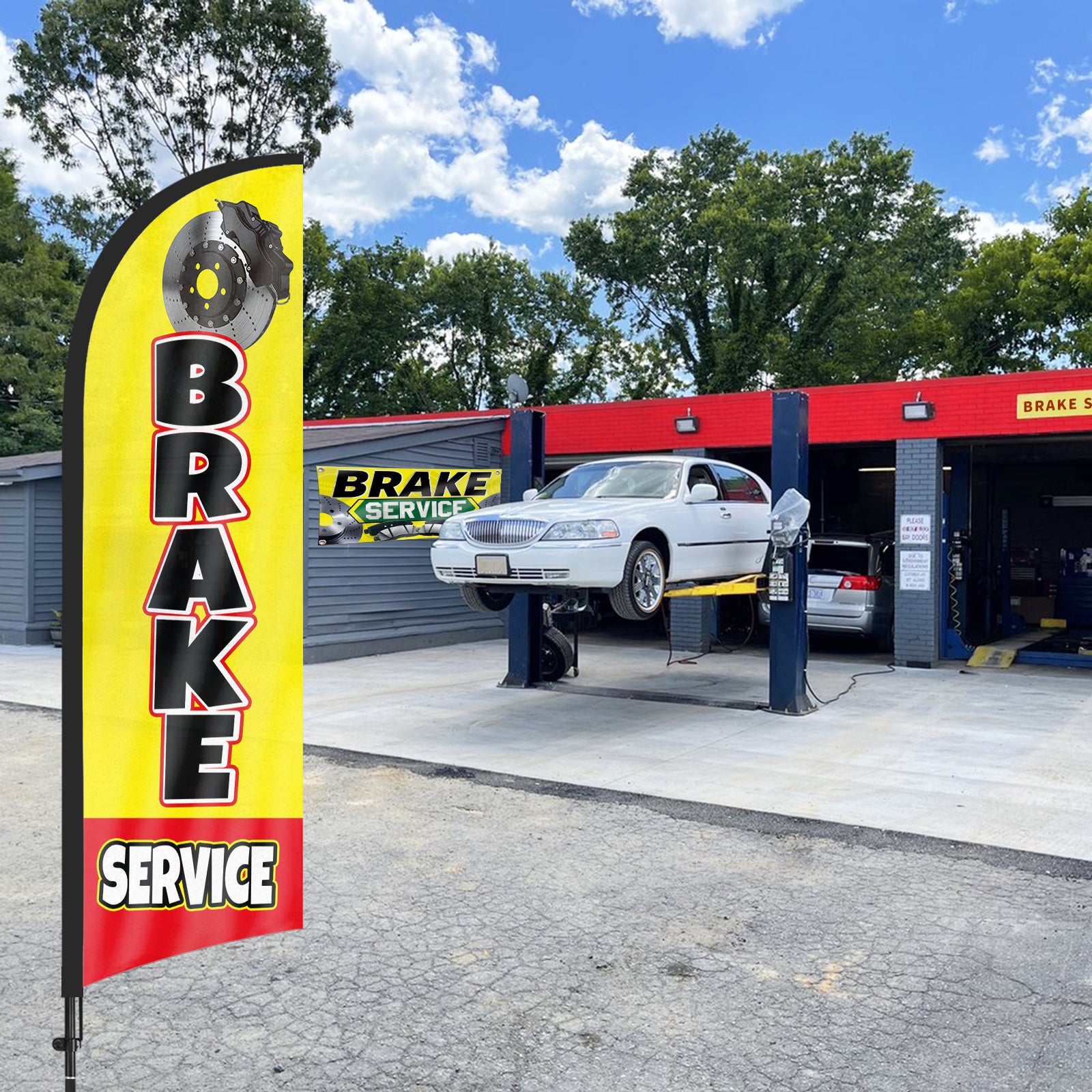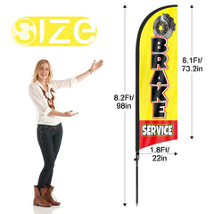 - 【Cost-Effective Advertising】The Brake Service sign offer a cost-effective advertising solution compared to other traditional forms of outdoor advertising. This Brake Service flag size is (8.2ft/98in) tall and (1.8ft/22in) wide, visible enough from far away, ensures your business stands out from the crowd, grabbing attention and increasing foot traffic.