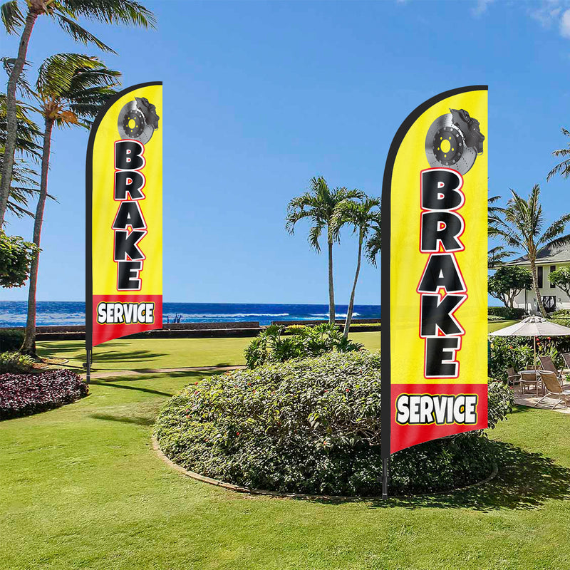- 【Attention-Grabbing】Brake Service feather flags stand tall and sway with the wind, making them highly visible and attention-grabbing. The Brake Service flags’ unique shape and vibrant colors make them stand out in crowded environments, attracting many potential customers from a distance.