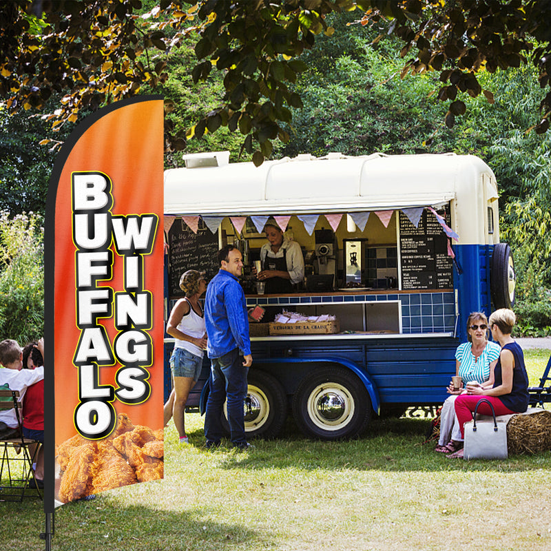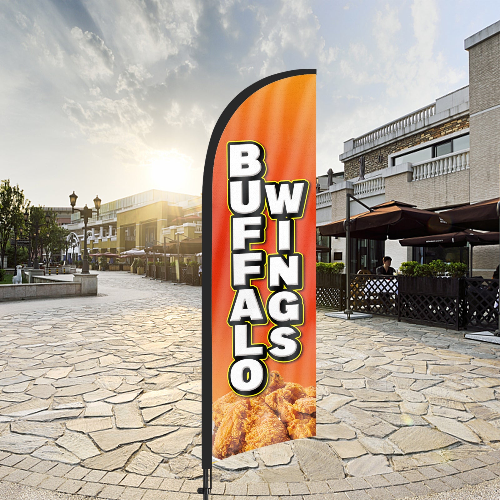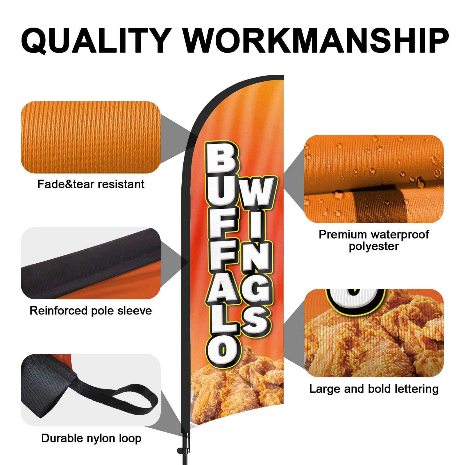 - 【Attention-Grabbing】Buffalo Wings feather flags stand tall and sway with the wind, making them highly visible and attention-grabbing. The Buffalo Wings flags’ unique shape and vibrant colors make them stand out in crowded environments, attracting many potential customers from a distance.