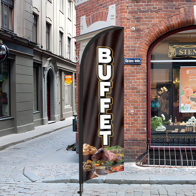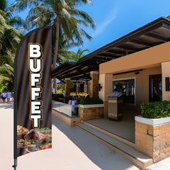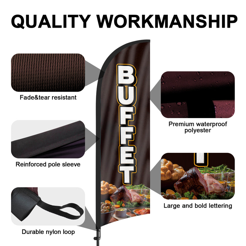 • 【Cost-Effective Advertising】The Buffet sign offers a cost-effective advertising solution compared to other traditional forms of outdoor advertising. This Buffet flag size is (8.2ft/98in) tall and (1.8ft/22in) wide, visible enough from far away, ensures your business stands out from the crowd, grabbing attention and increasing foot traffic.