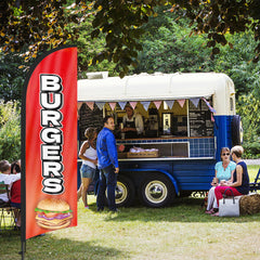- 【Cost-Effective Advertising】The Burgers sign offer a cost-effective advertising solution compared to other traditional forms of outdoor advertising. This Burgers flag size is (8.2ft/98in) tall and (1.8ft/22in) wide, visible enough from far away, ensures your business stands out from the crowd, grabbing attention and increasing foot traffic.