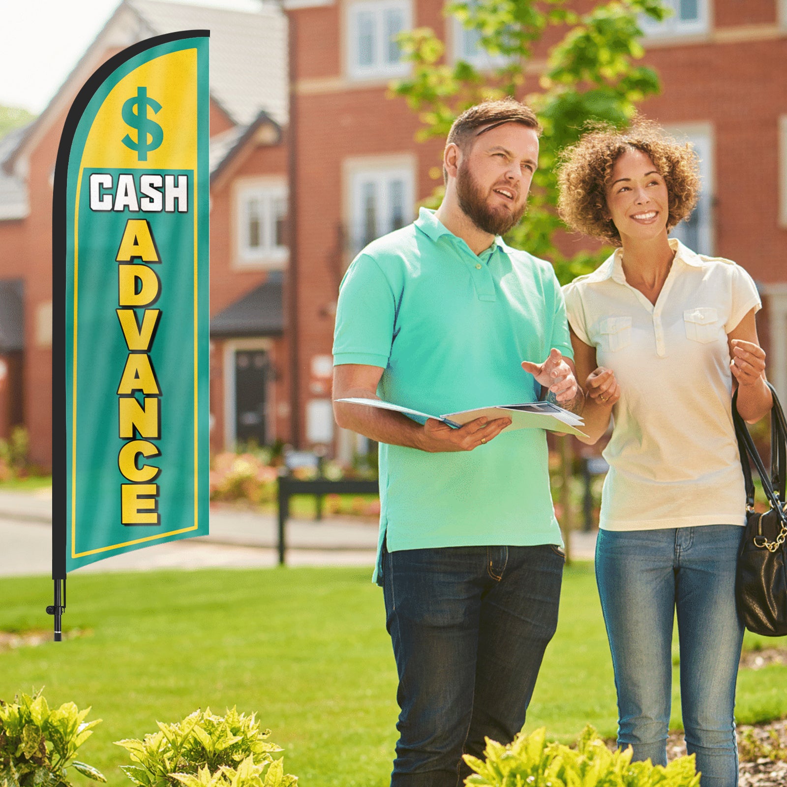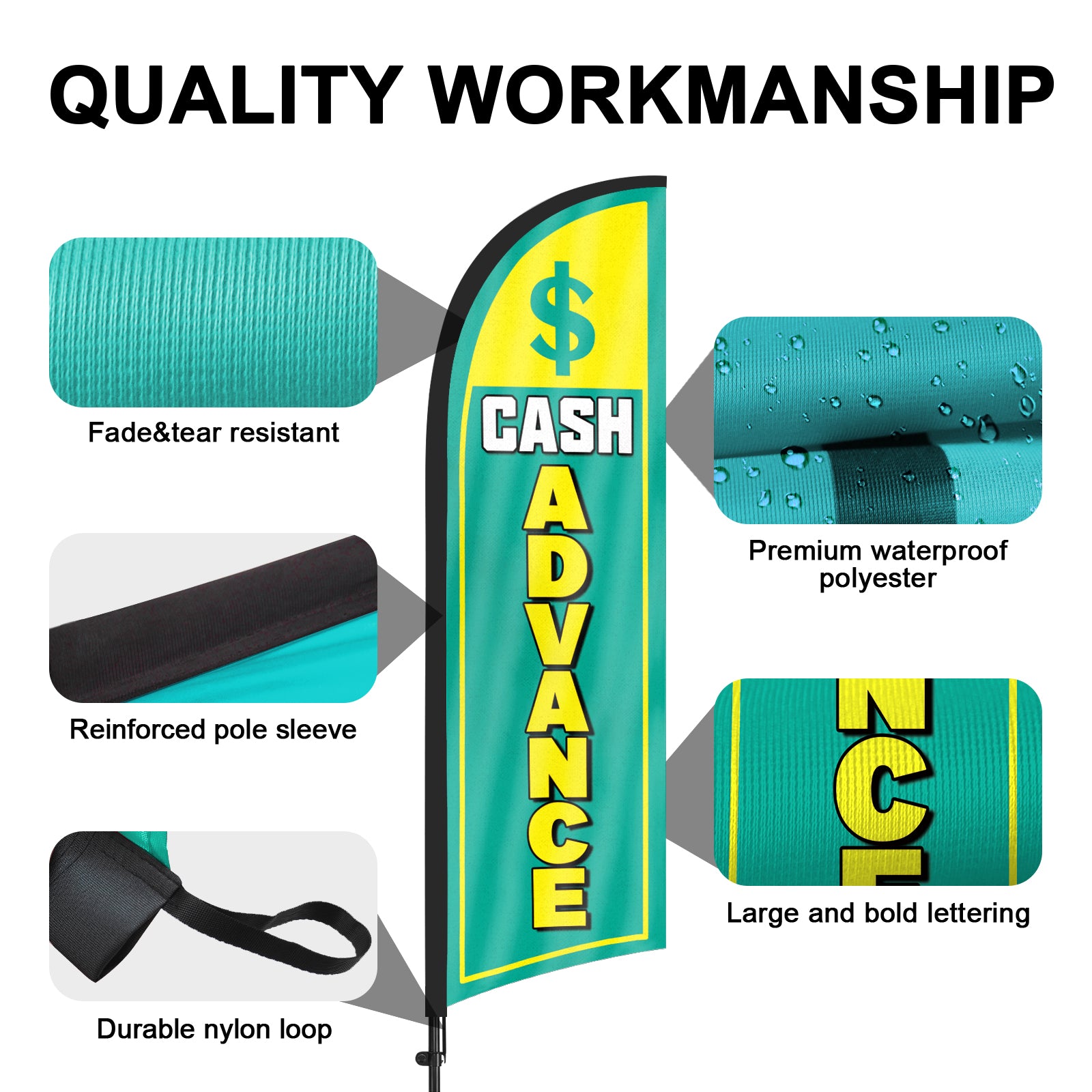 8Ft Cash Advance Feather Flag with Flag Pole and Ground Stake