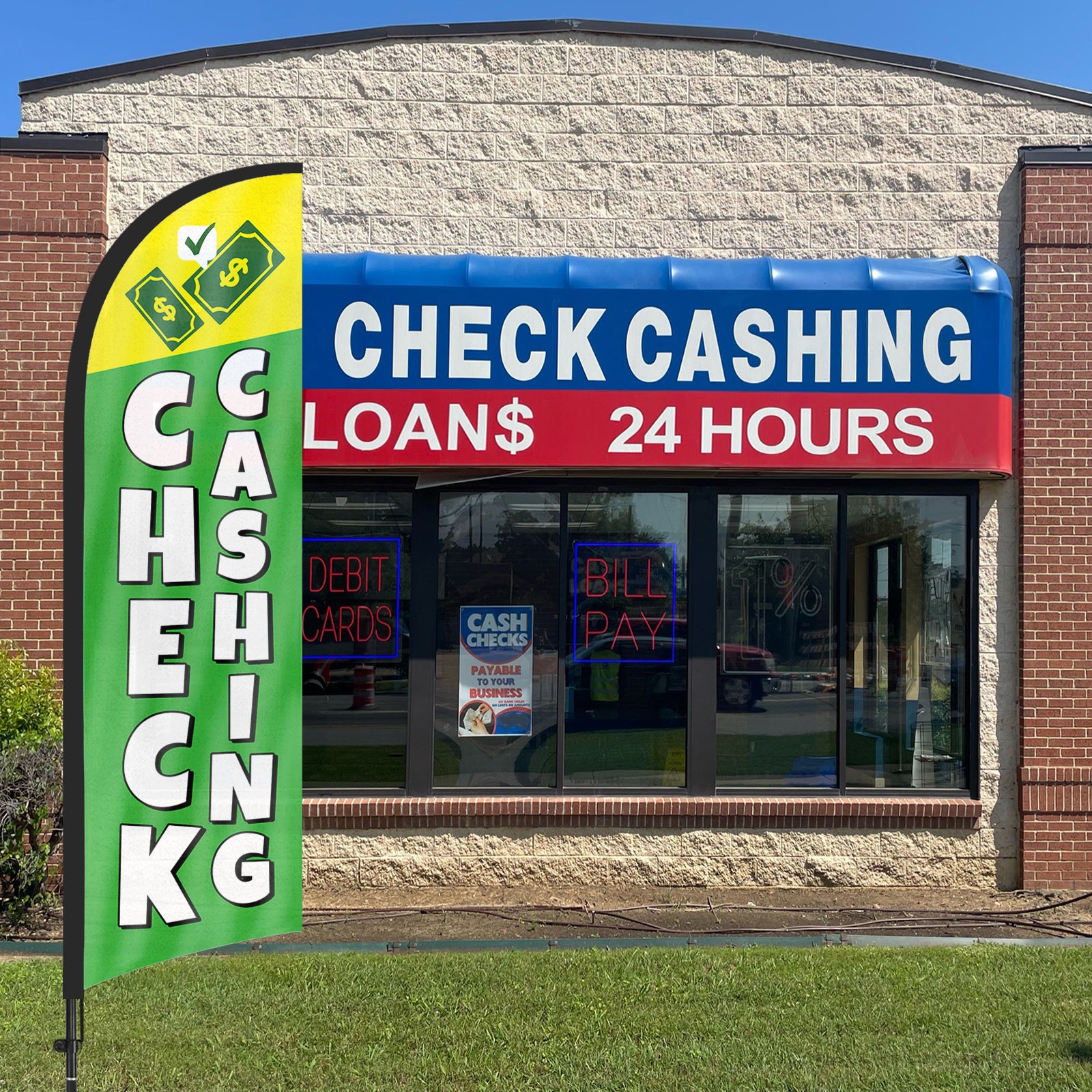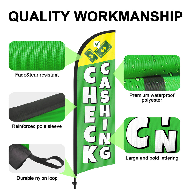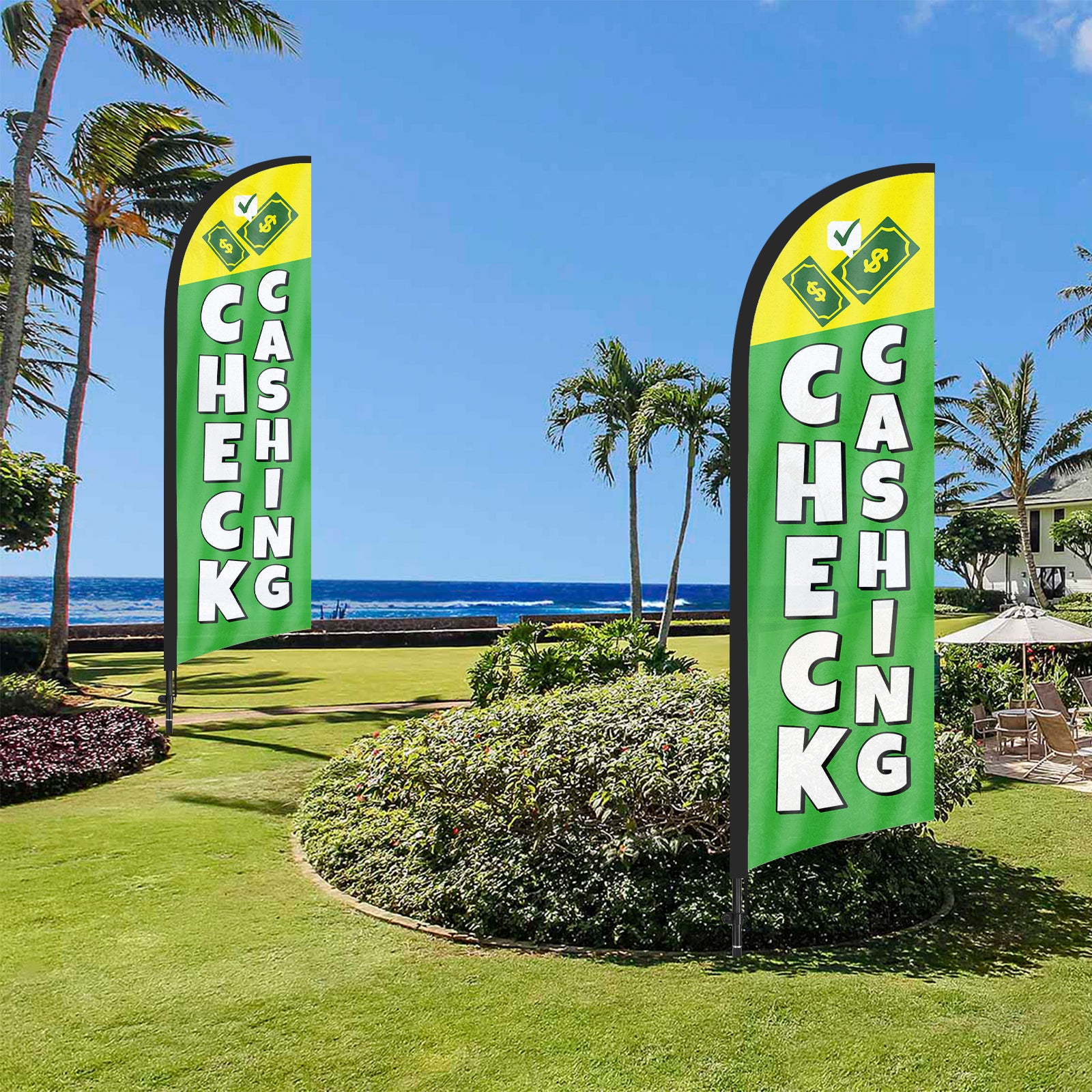 8ft Check Cashing Green Feather Flag with Pole and Stake