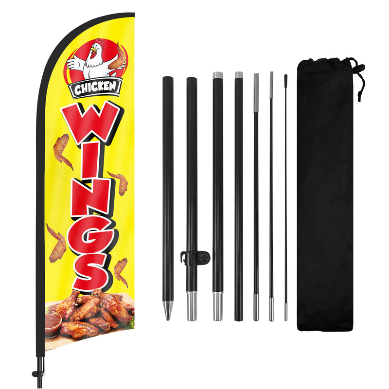 - 【Portable and Easy Setup】This Wings feather flag pole kit includes 1 swooper flag+6 rods+1 ground stake and comes with 1 carry bag. They can be quickly set up and taken down, requiring minimal effort.