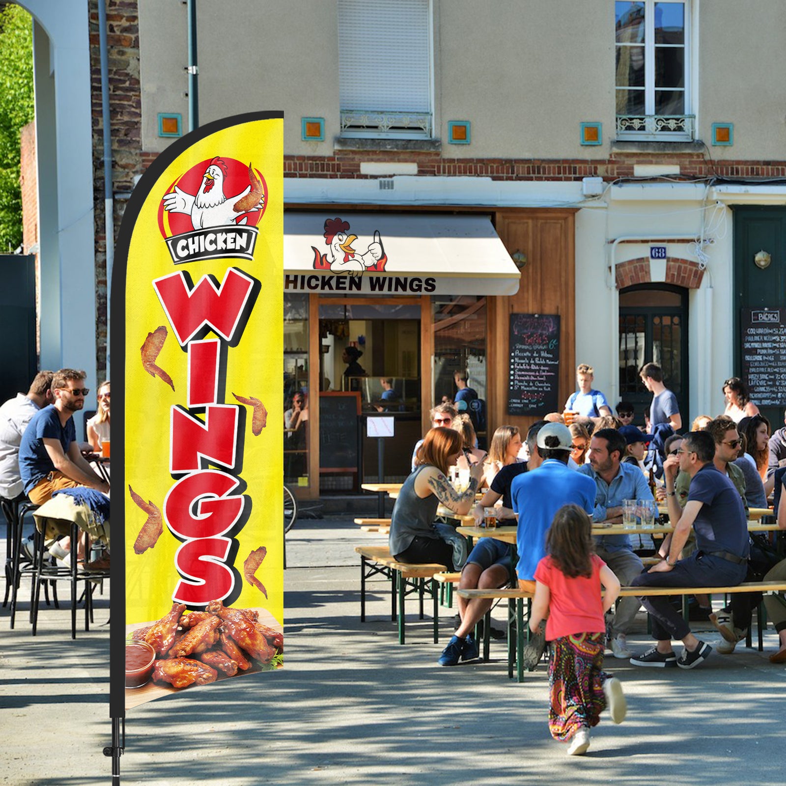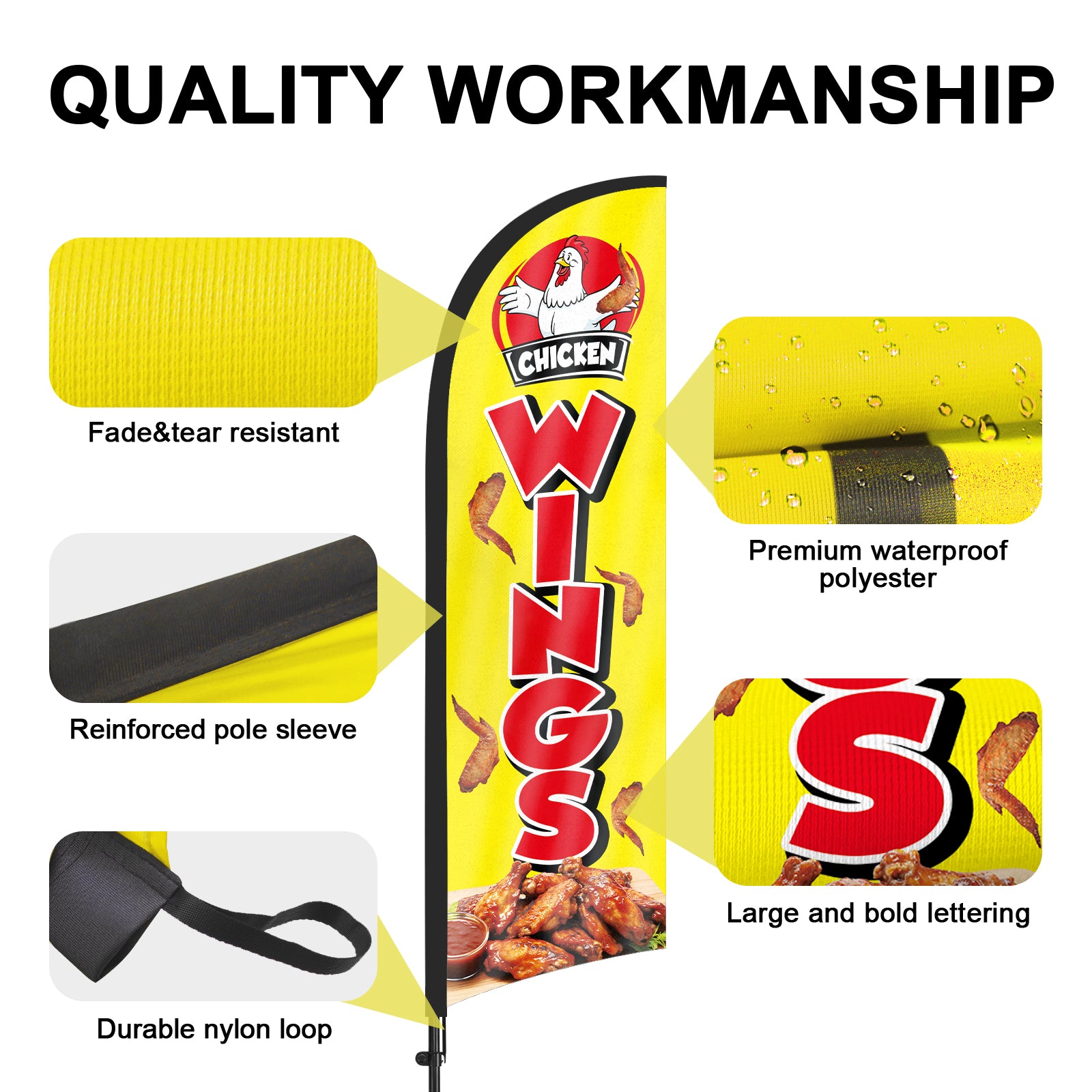 - 【Attention-Grabbing】Wings feather flags stand tall and sway with the wind, making them highly visible and attention-grabbing. The Wings flags’ unique shape and vibrant colors make them stand out in crowded environments, attracting many potential customers from a distance.