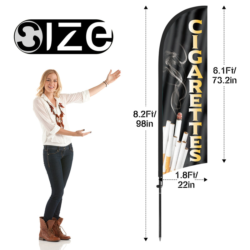 - 【Cost-Effective Advertising】The sign offer a cost-effective advertising solution compared to other traditional forms of outdoor advertising. This flag size is (8.2ft/98in) tall and (1.8ft/22in) wide, visible enough from far away, ensures your business stands out from the crowd, grabbing attention and increasing foot traffic.