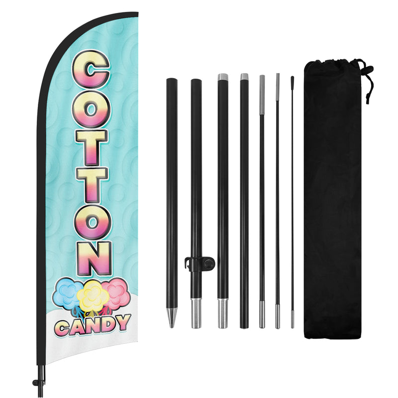 - 【Portable and Easy Setup】This Cotton Candy feather flag pole kit includes 1 swooper flag+6 rods+1 ground stake and comes with 1 carry bag. They can be quickly set up and taken down, requiring minimal effort.