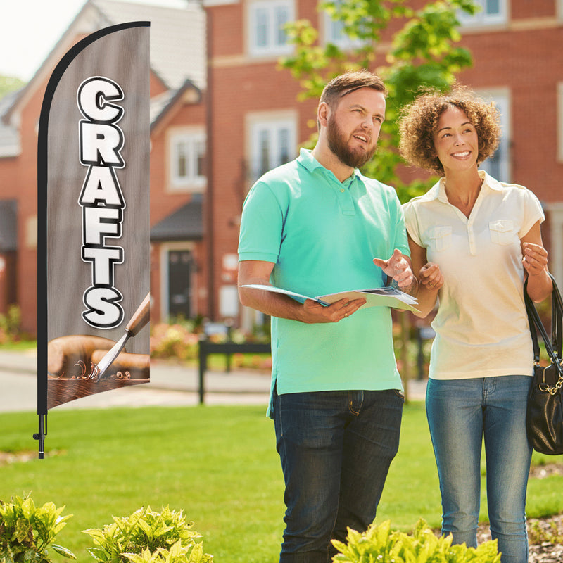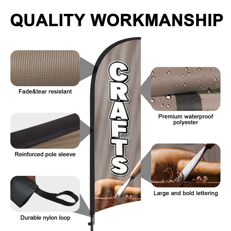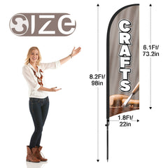 - 【Cost-Effective Advertising】The Crafts sign offer a cost-effective advertising solution compared to other traditional forms of outdoor advertising. This Crafts flag size is (8.2ft/98in) tall and (1.8ft/22in) wide, visible enough from far away, ensures your business stands out from the crowd, grabbing attention and increasing foot traffic.