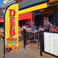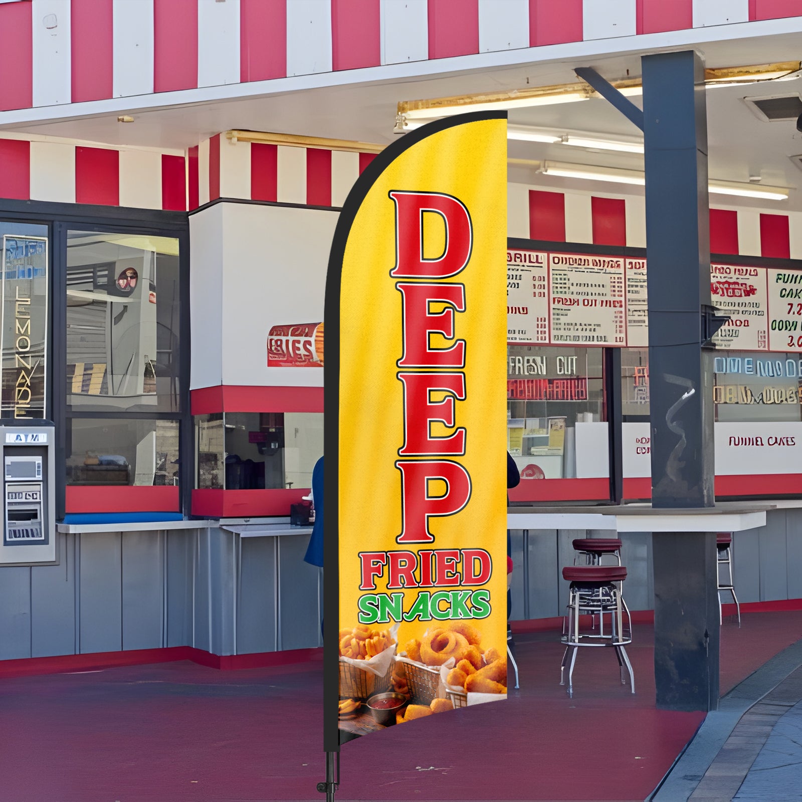 - 【Cost-Effective Advertising】The Deep Fried Snackssign offer a cost-effective advertising solution compared to other traditional forms of outdoor advertising. This Deep Fried Snacks flag size is (8.2ft/98in) tall and (1.8ft/22in) wide, visible enough from far away, ensures your business stands out from the crowd, grabbing attention and increasing foot traffic.