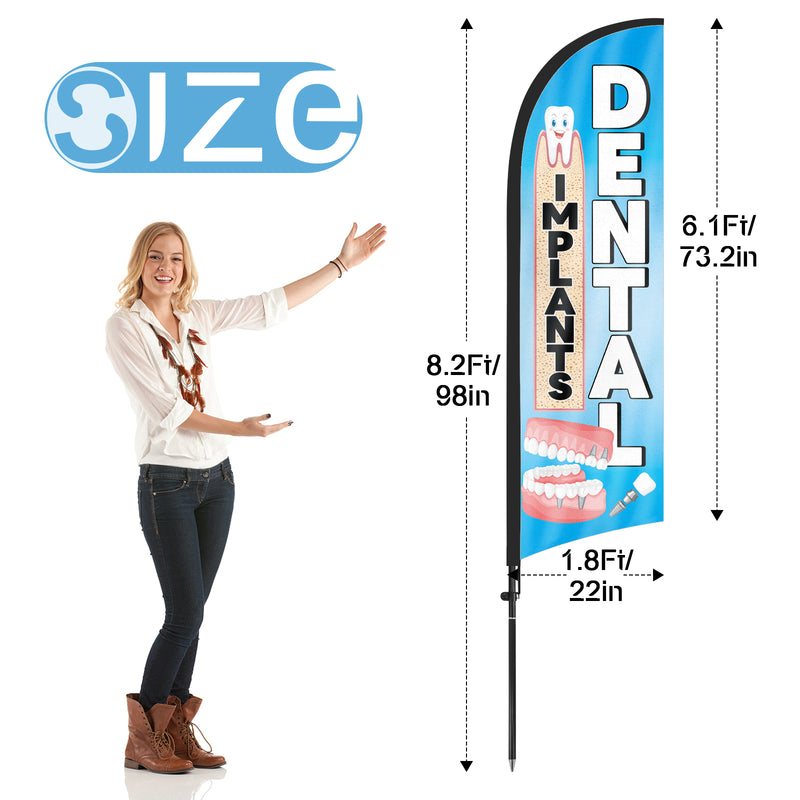 - 【Cost-Effective Advertising】The Dental Implants sign offer a cost-effective advertising solution compared to other traditional forms of outdoor advertising. This Dental Implants flag size is (8.2ft/98in) tall and (1.8ft/22in) wide, visible enough from far away, ensures your business stands out from the crowd, grabbing attention and increasing foot traffic.