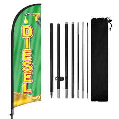 - 【Portable and Easy Setup】This Diesel feather flag pole kit includes 1 swooper flag+6 rods+1 ground stake and comes with 1 carry bag. They can be quickly set up and taken down, requiring minimal effort.