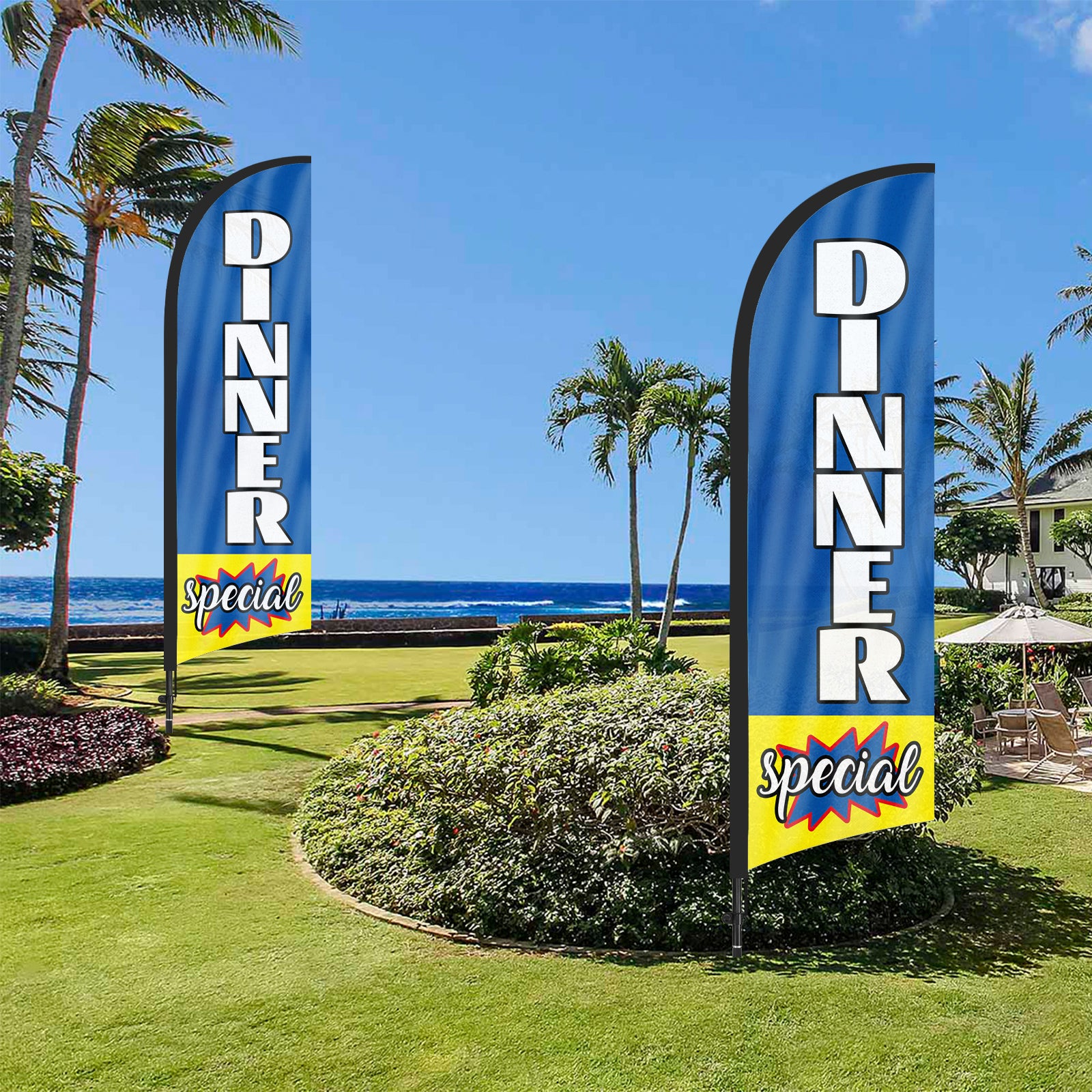 - 【Attention-Grabbing】Dinner Special feather flags stand tall and sway with the wind, making them highly visible and attention-grabbing. The Dinner Special flags’ unique shape and vibrant colors make them stand out in crowded environments, attracting many potential customers from a distance.